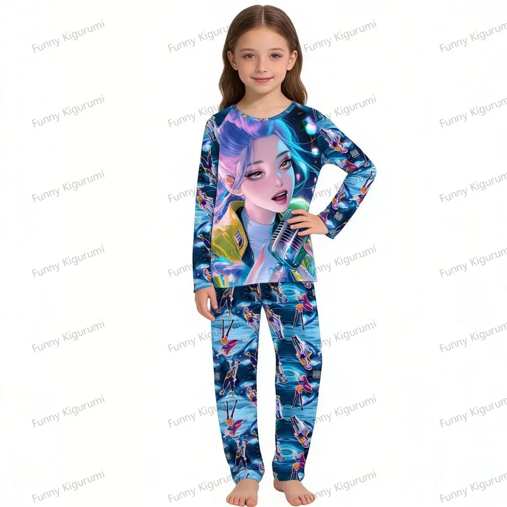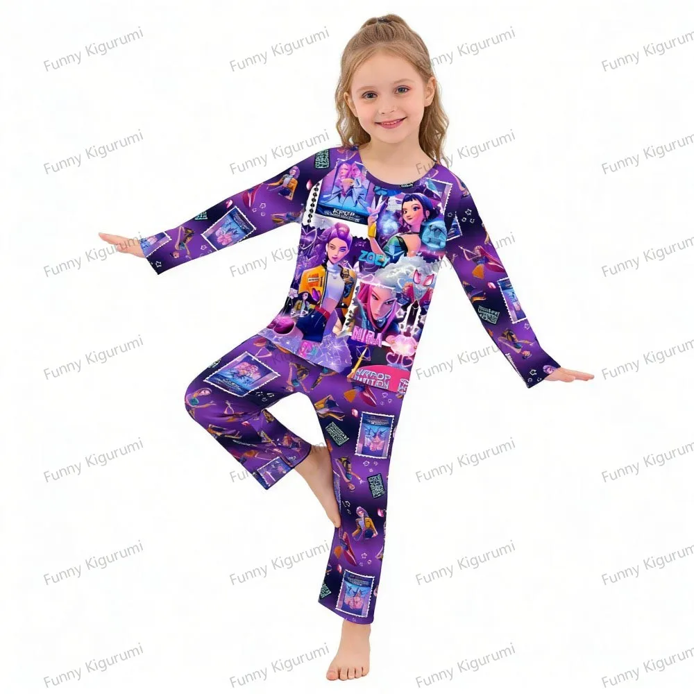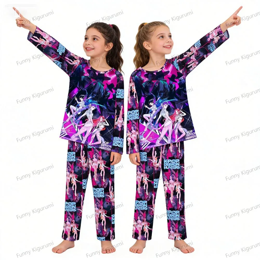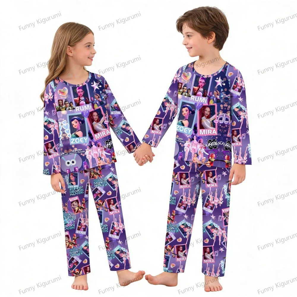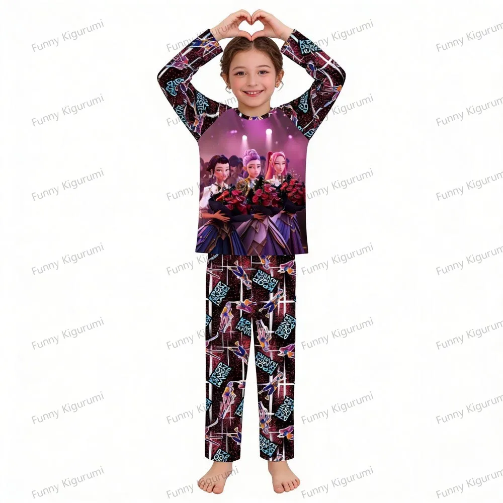 Pijamas Infantis Femininos Coreanos Kpop Demon Hunters com Estampa Rumi Mira Zoey, Conjuntos de Roupa Infantil de Manga Comprida com Gola Redonda, Pijama e Roupa de Casa