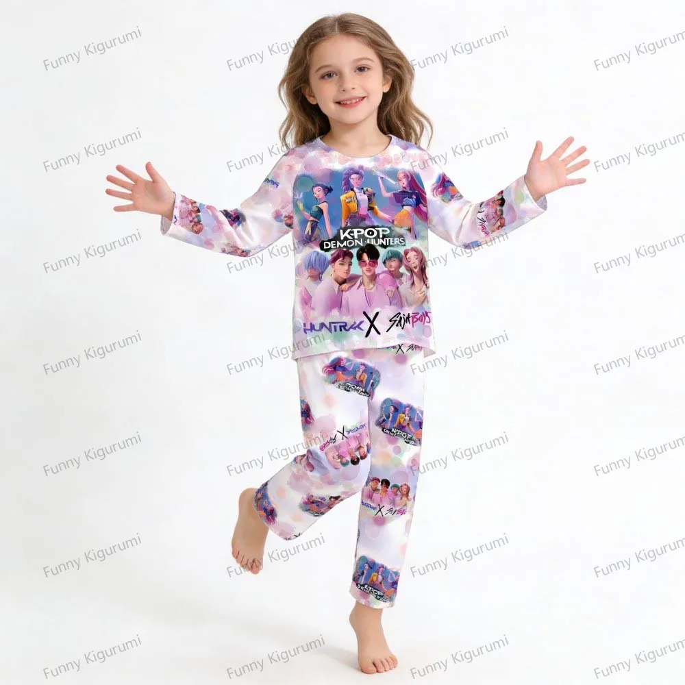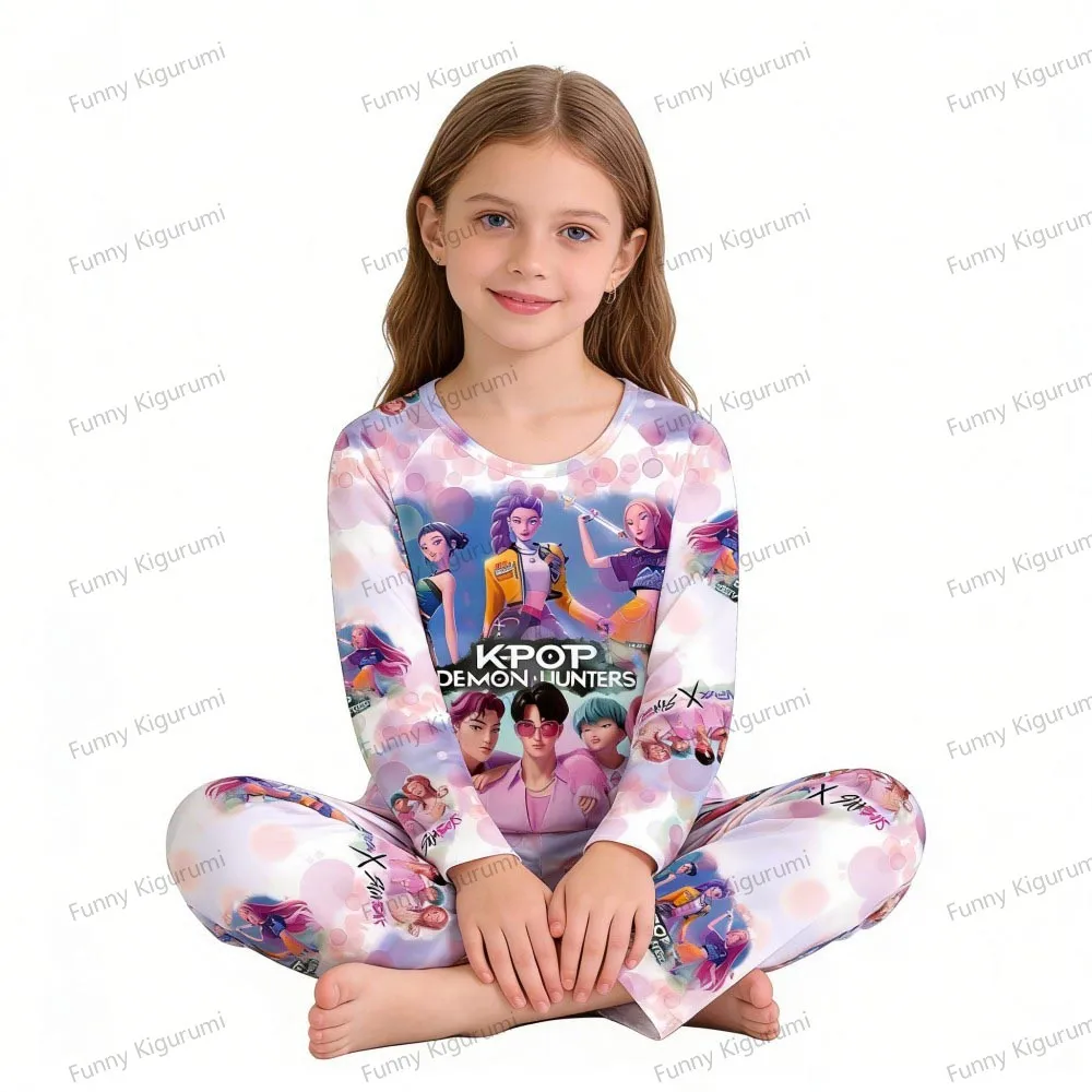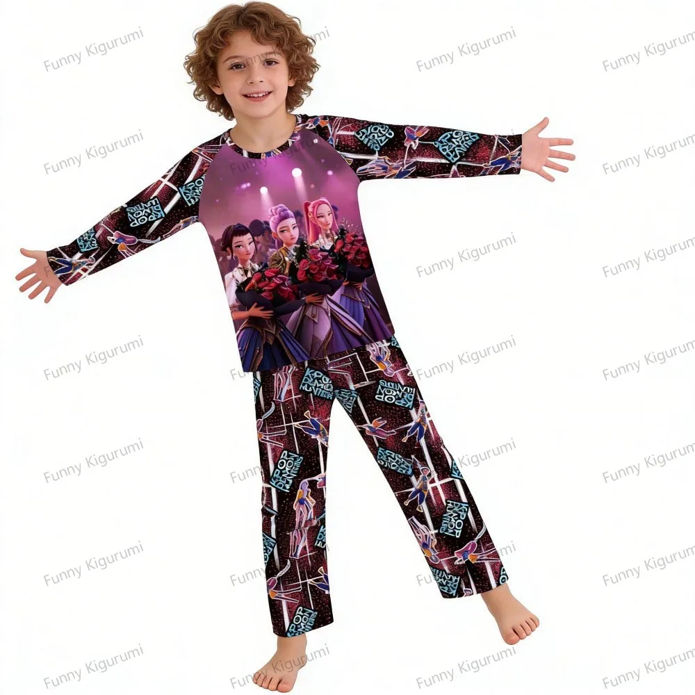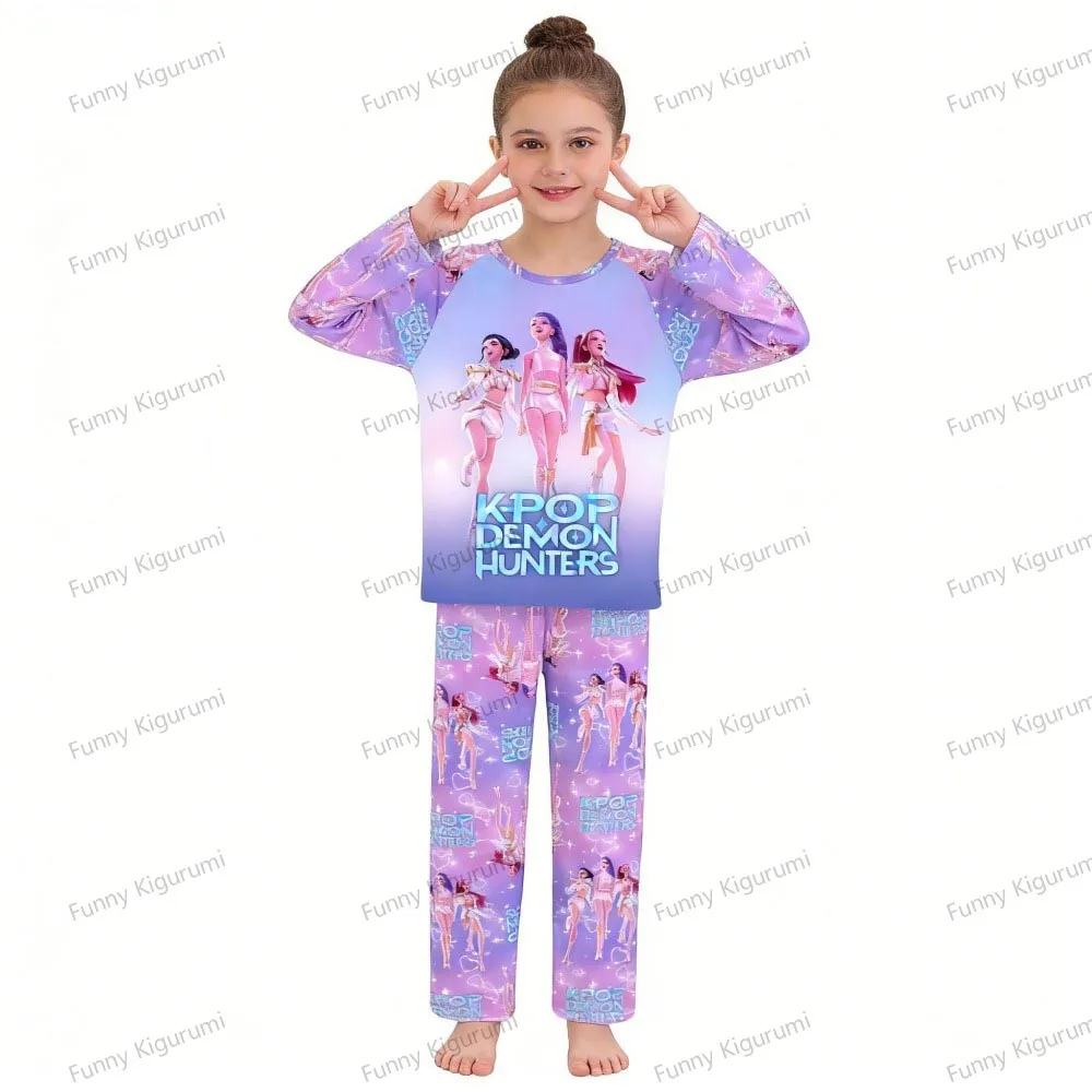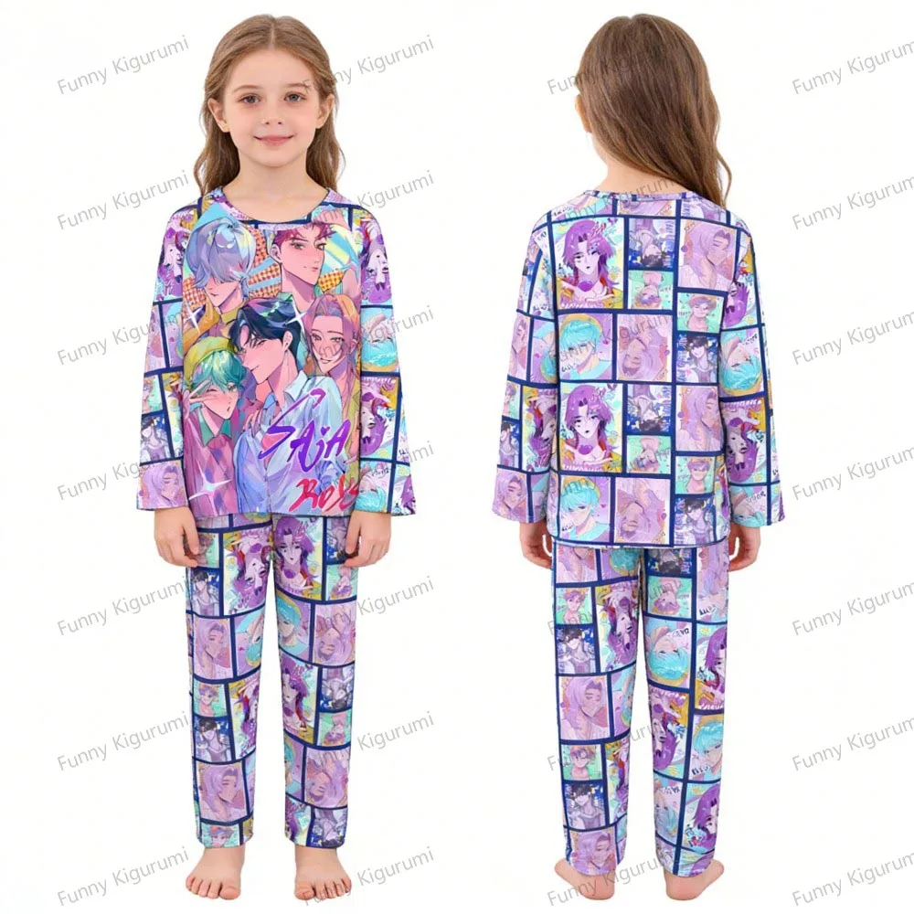 Pijamas Infantis Femininos Coreanos Kpop Demon Hunters com Estampa Rumi Mira Zoey, Conjuntos de Roupa Infantil de Manga Comprida com Gola Redonda, Pijama e Roupa de Casa