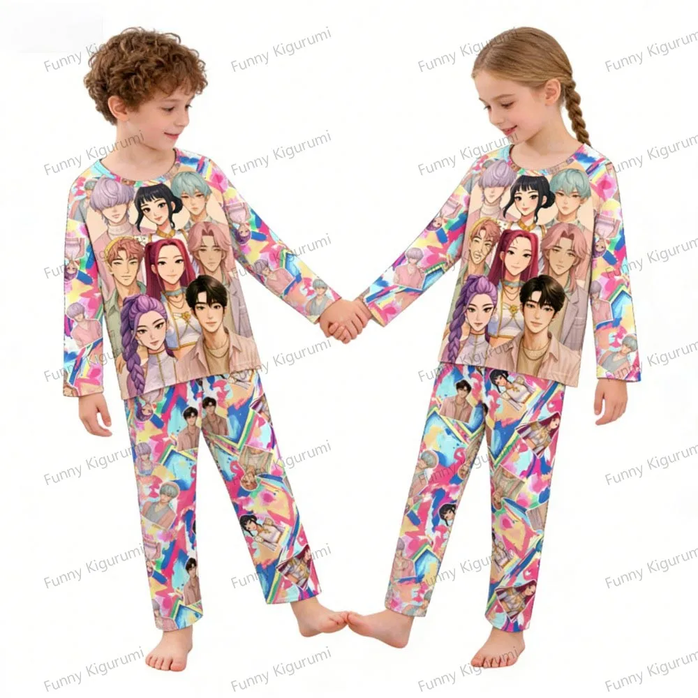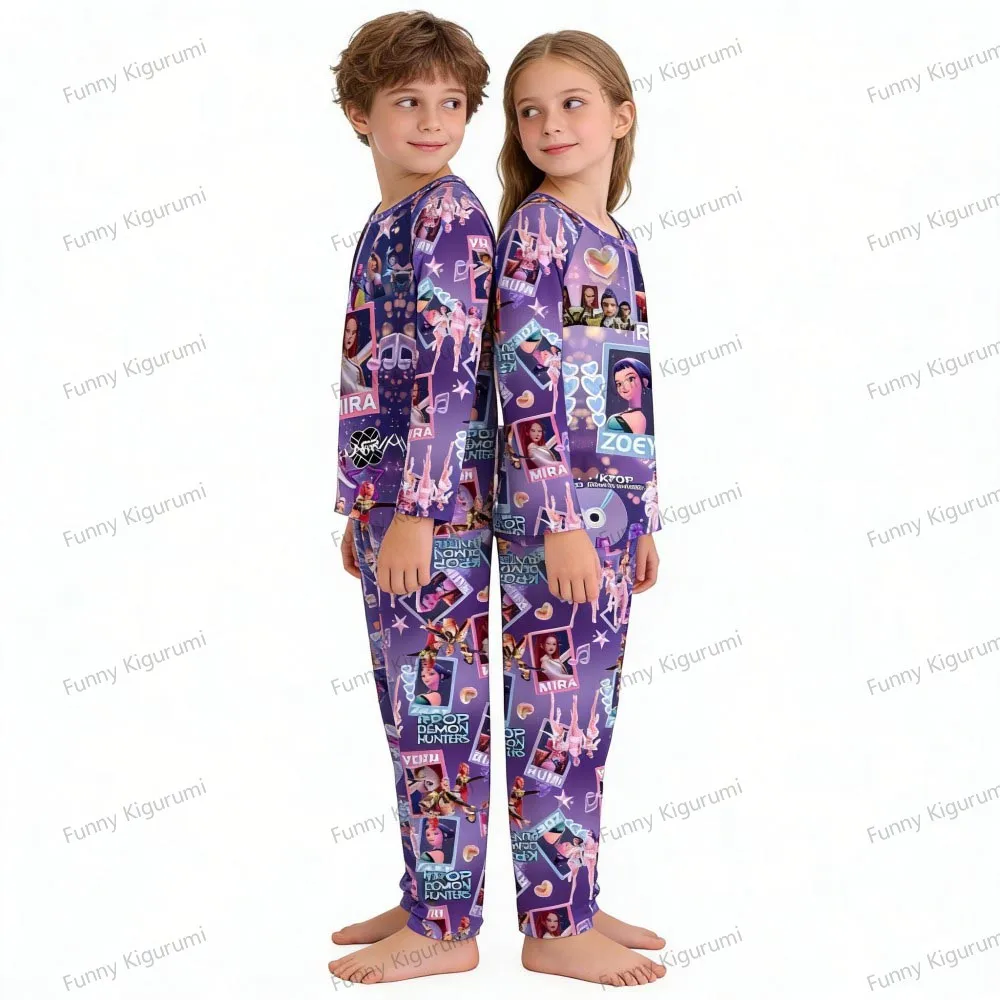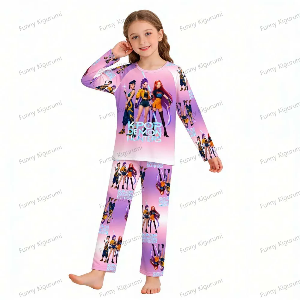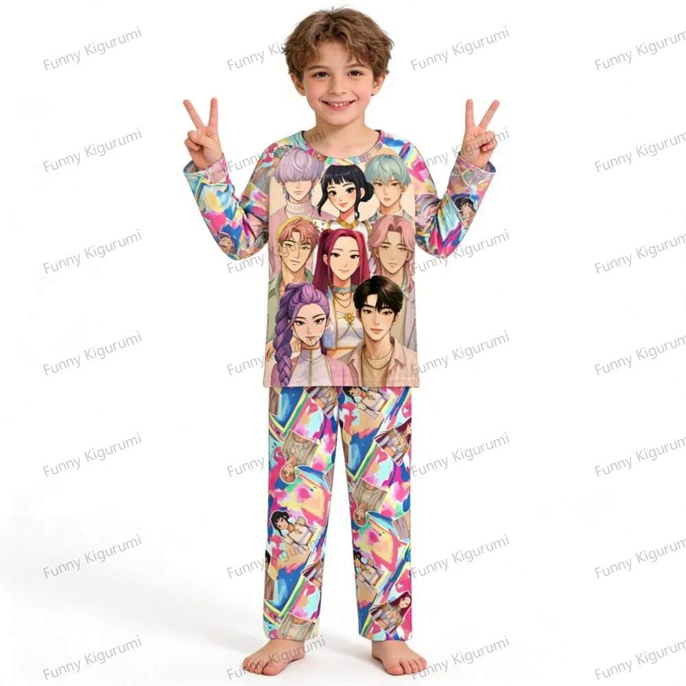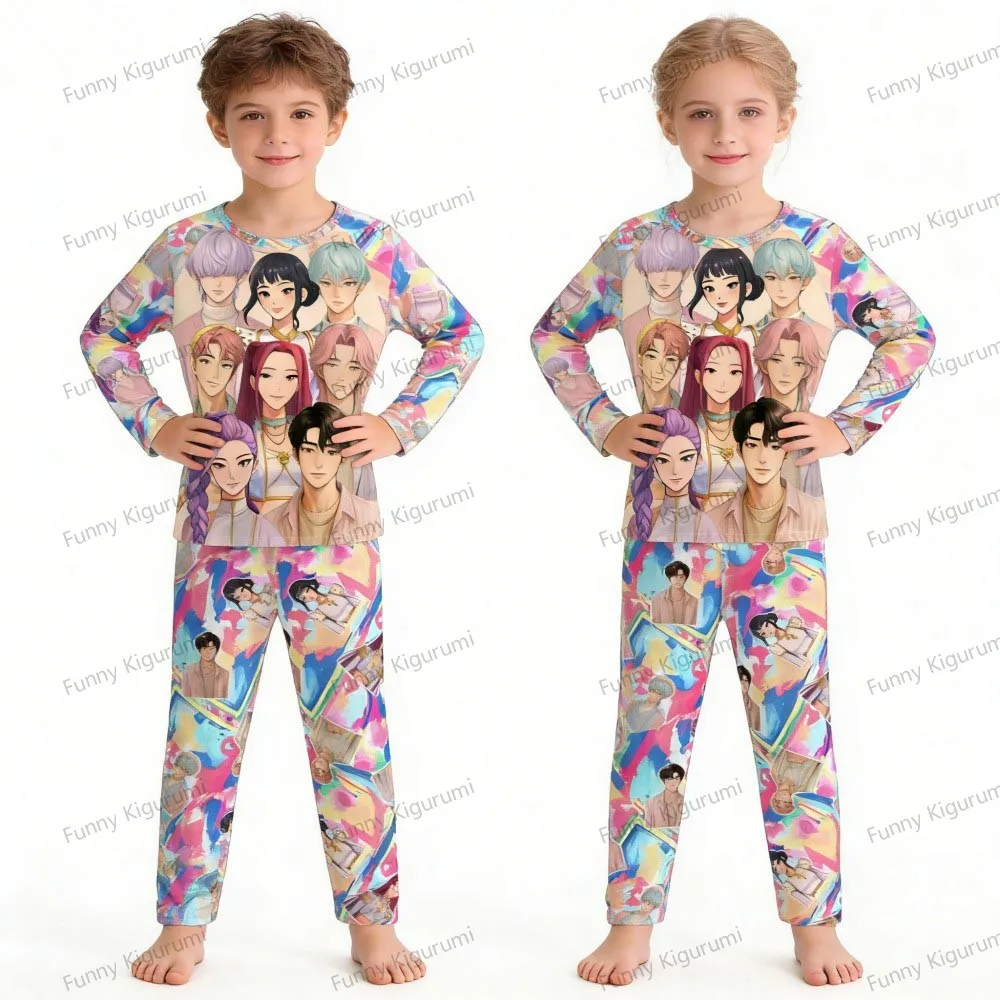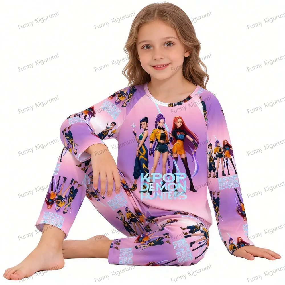 Pijamas Infantis Femininos Coreanos Kpop Demon Hunters com Estampa Rumi Mira Zoey, Conjuntos de Roupa Infantil de Manga Comprida com Gola Redonda, Pijama e Roupa de Casa