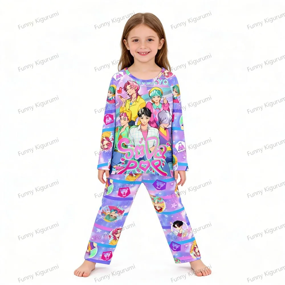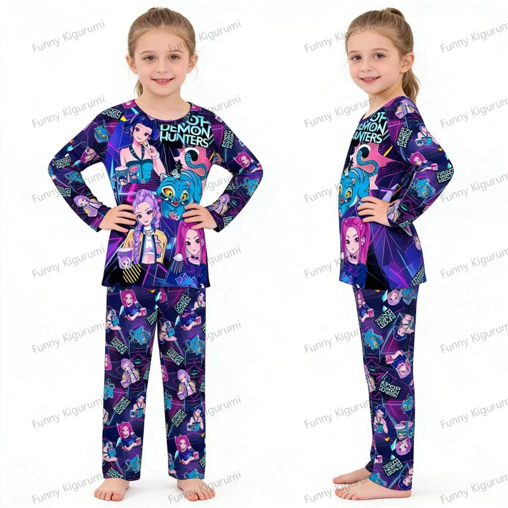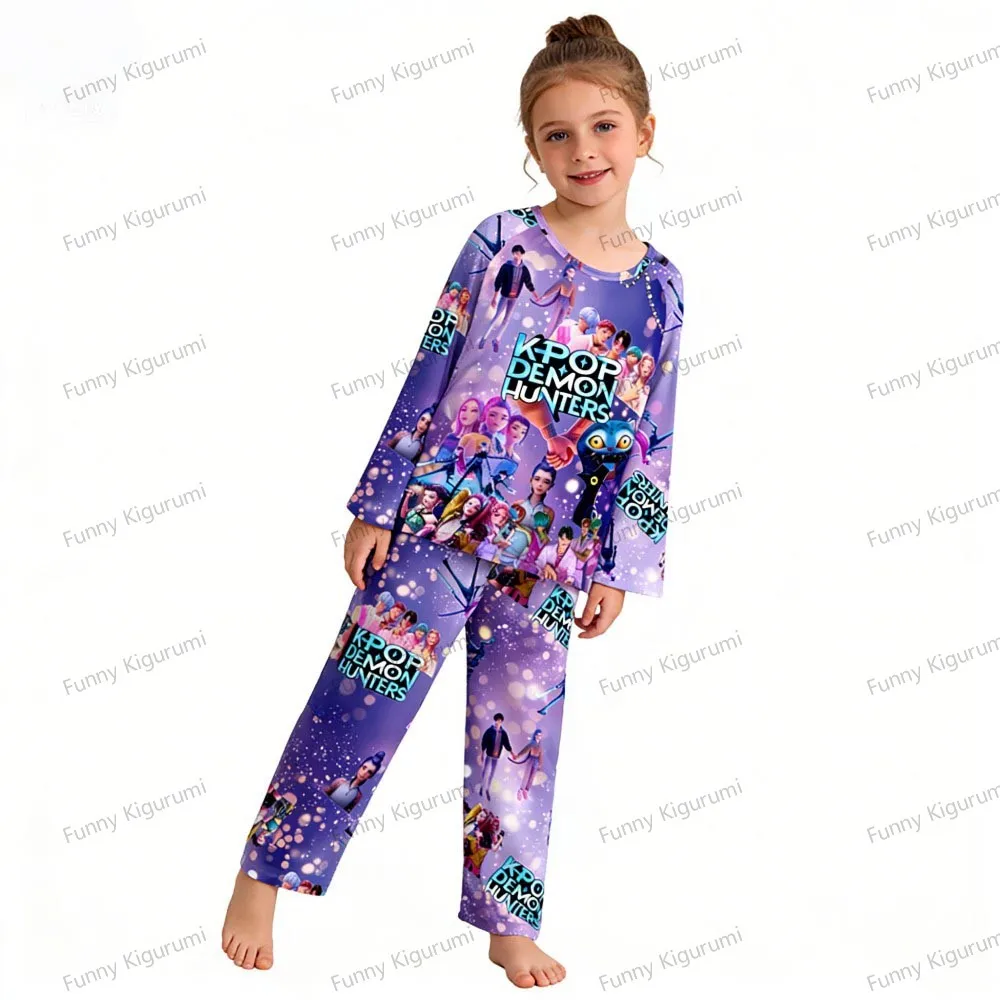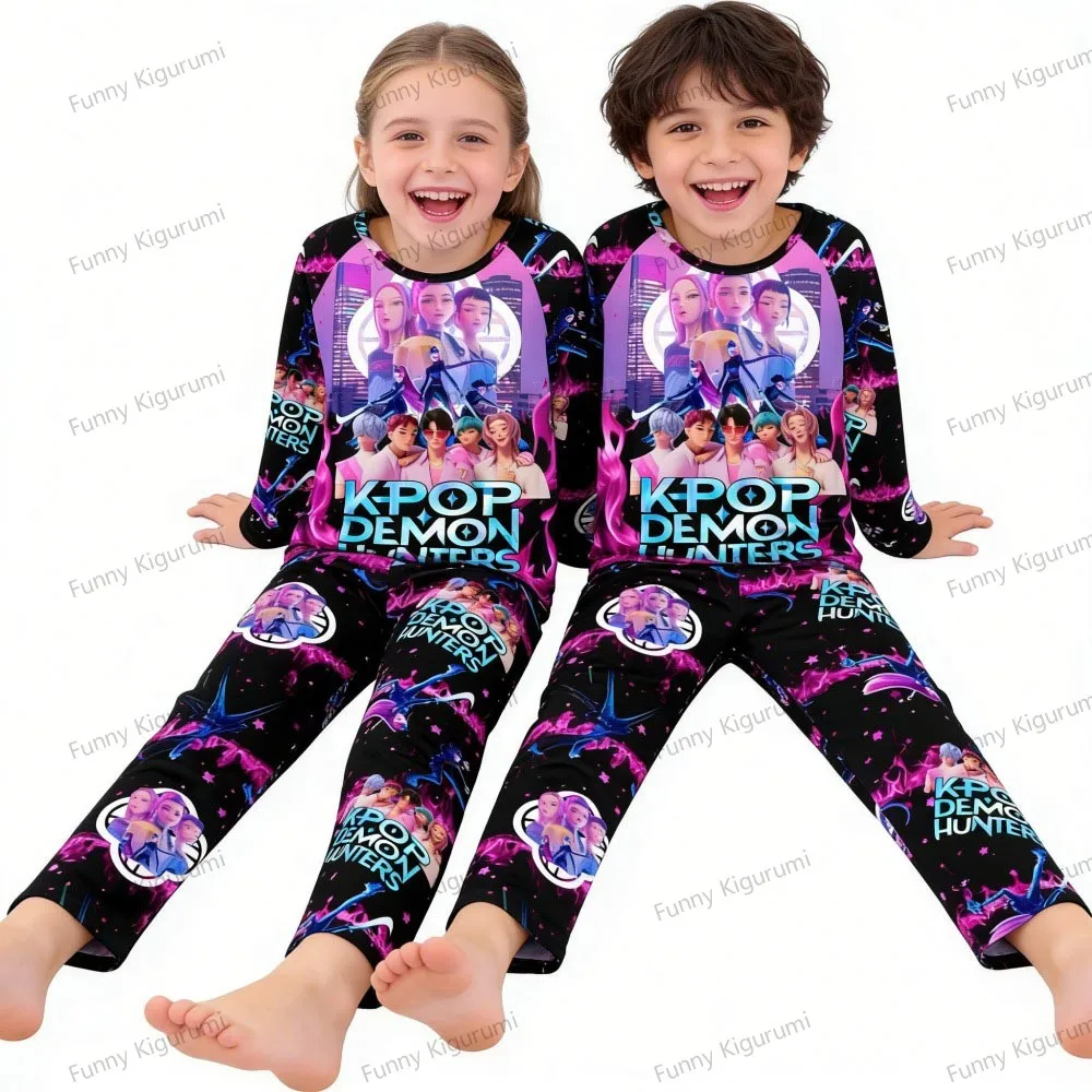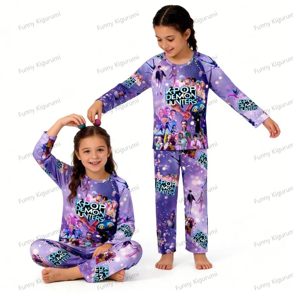 Pijamas Infantis Femininos Coreanos Kpop Demon Hunters com Estampa Rumi Mira Zoey, Conjuntos de Roupa Infantil de Manga Comprida com Gola Redonda, Pijama e Roupa de Casa