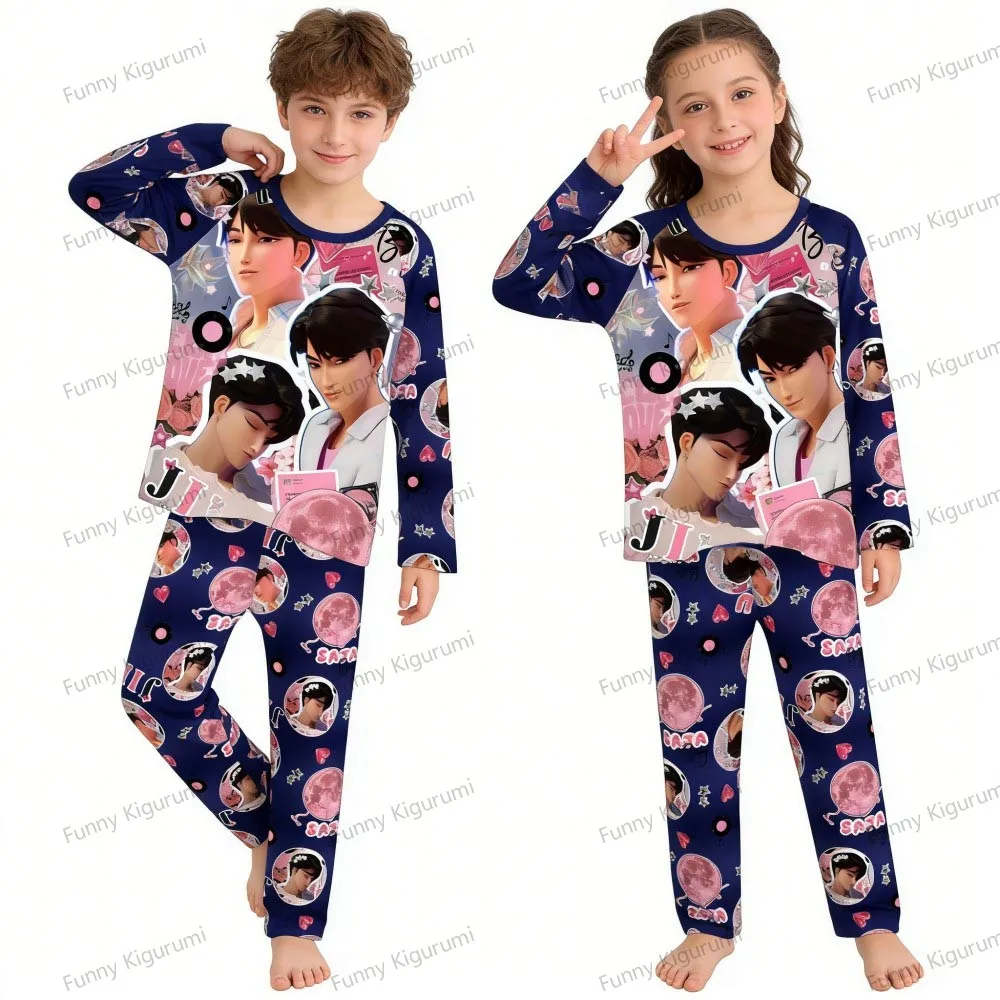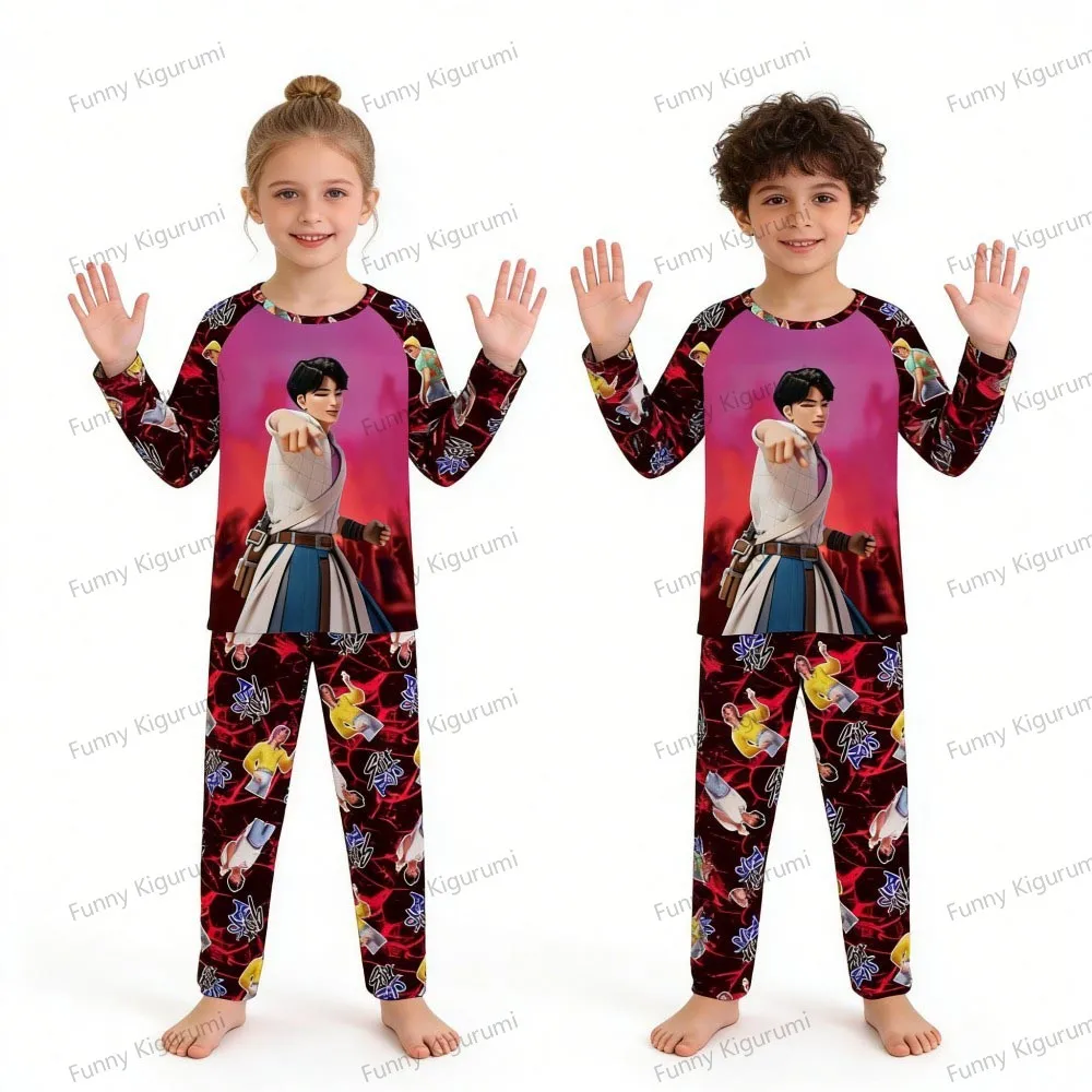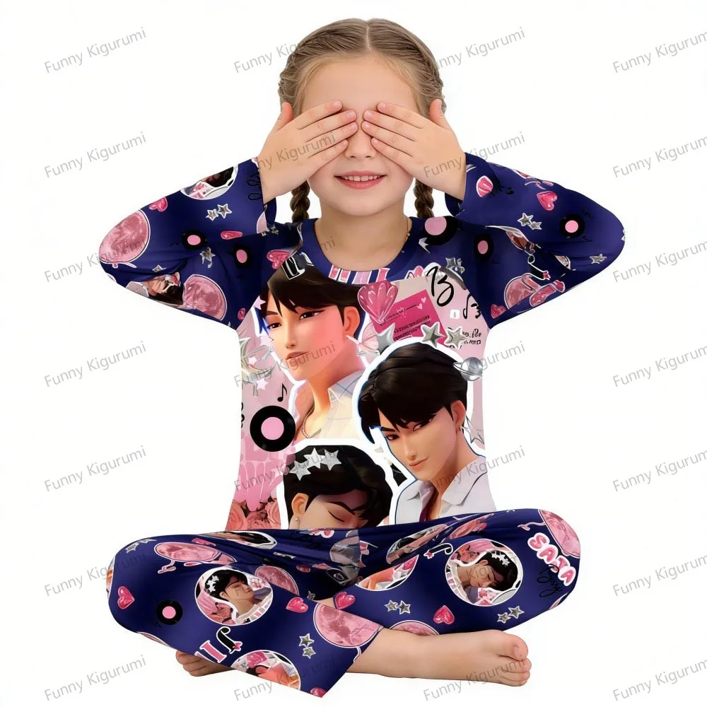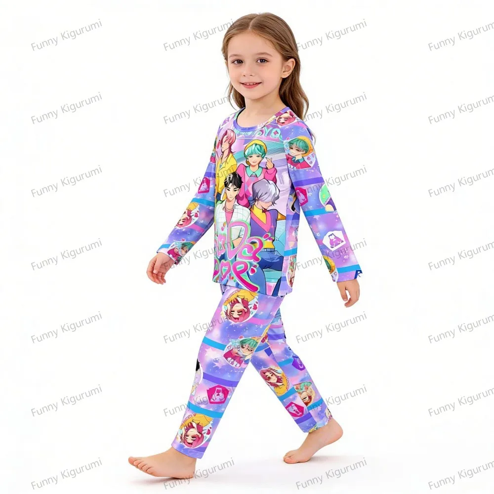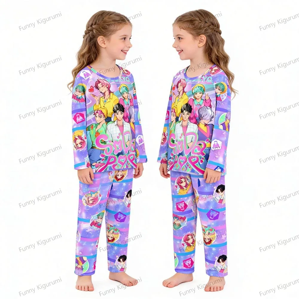 Pijamas Infantis Femininos Coreanos Kpop Demon Hunters com Estampa Rumi Mira Zoey, Conjuntos de Roupa Infantil de Manga Comprida com Gola Redonda, Pijama e Roupa de Casa