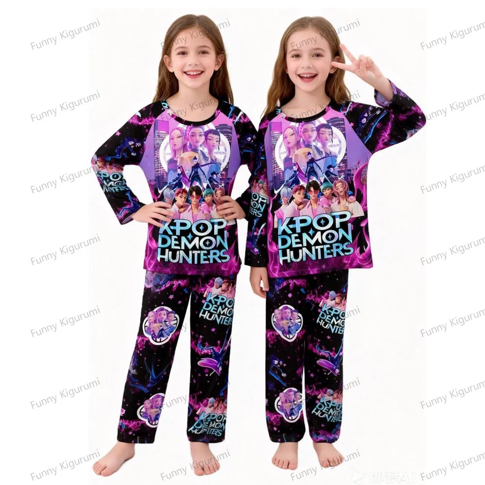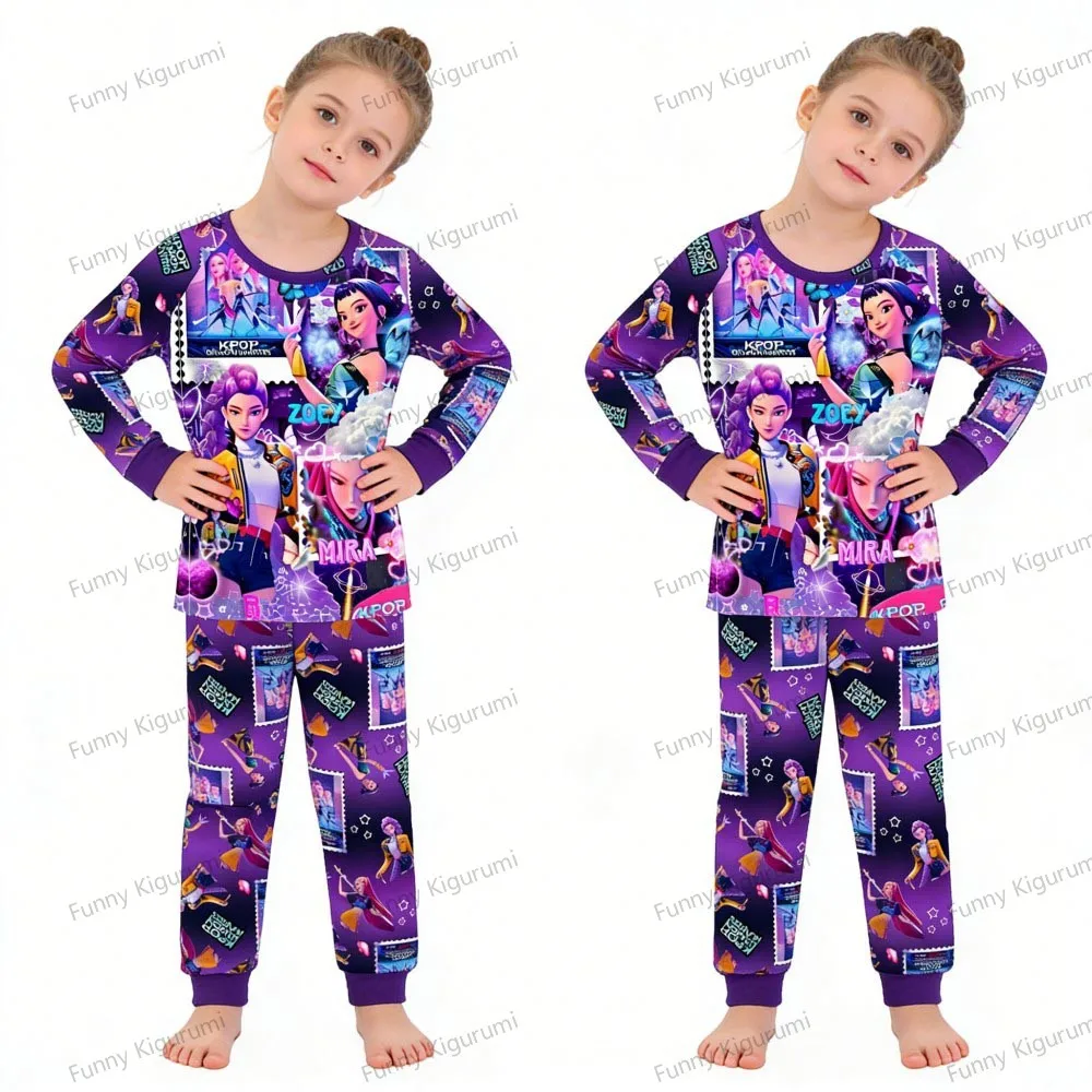 - > Pijamas Infantis Femininos Coreanos Kpop Demon Hunters com Estampa Rumi Mira Zoey, Conjuntos de Roupa Infantil de Manga Comprida com Gola Redonda, Pijama e Roupa de Casa