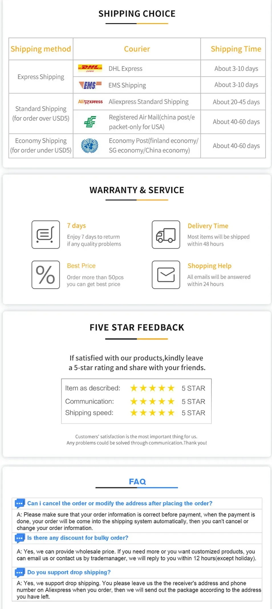 Nós fornecemos a você o melhor produto e serviço. Se você tiver algum problema, informe-nos e resolveremos o problema o mais rápido possível. Muito obrigado.