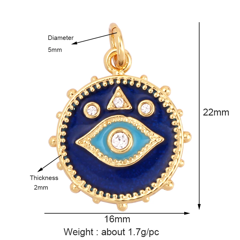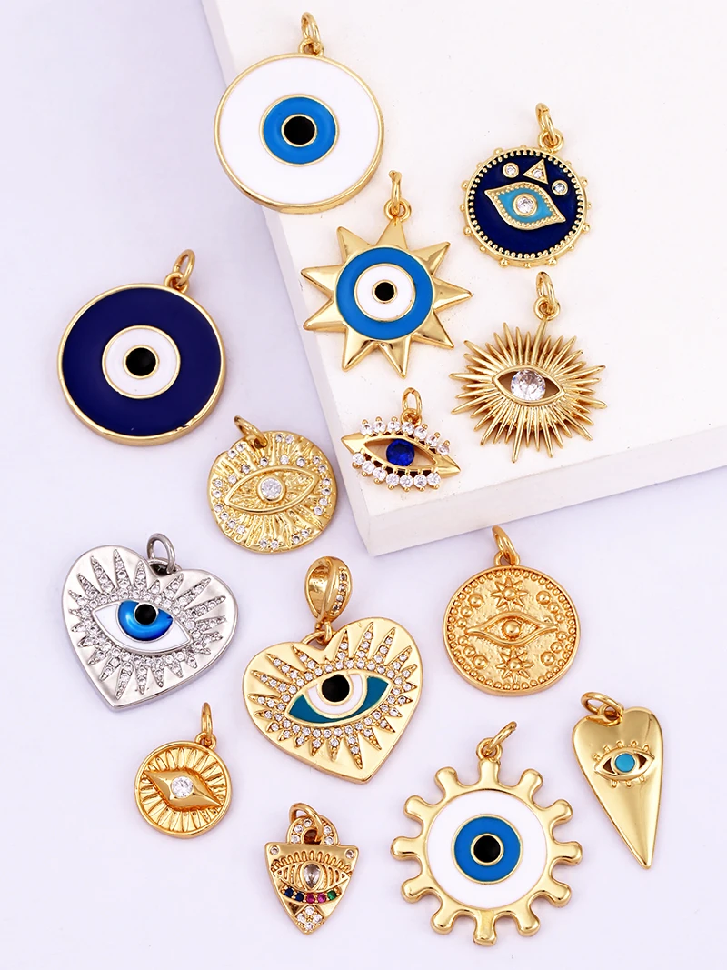 Pingente de pingente de mau olhado, 18k banhado a ouro real zircônia cúbica cz pavimentada religours, colar de joias pulseira acessórios suprimentos k09