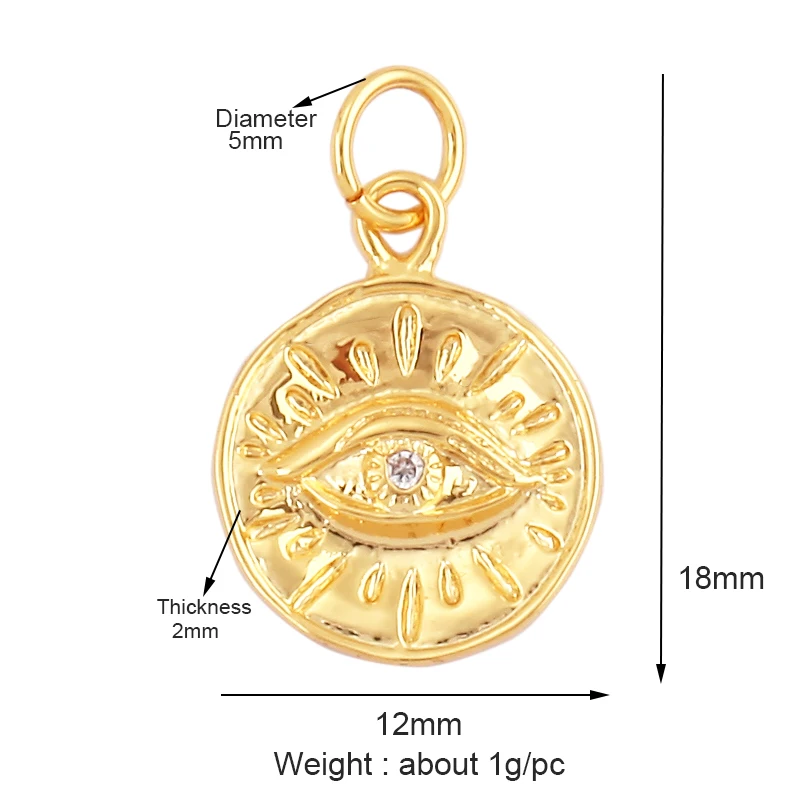 - > Pingente de pingente de mau olhado, 18k banhado a ouro real zircônia cúbica cz pavimentada religours, colar de joias pulseira acessórios suprimentos k09