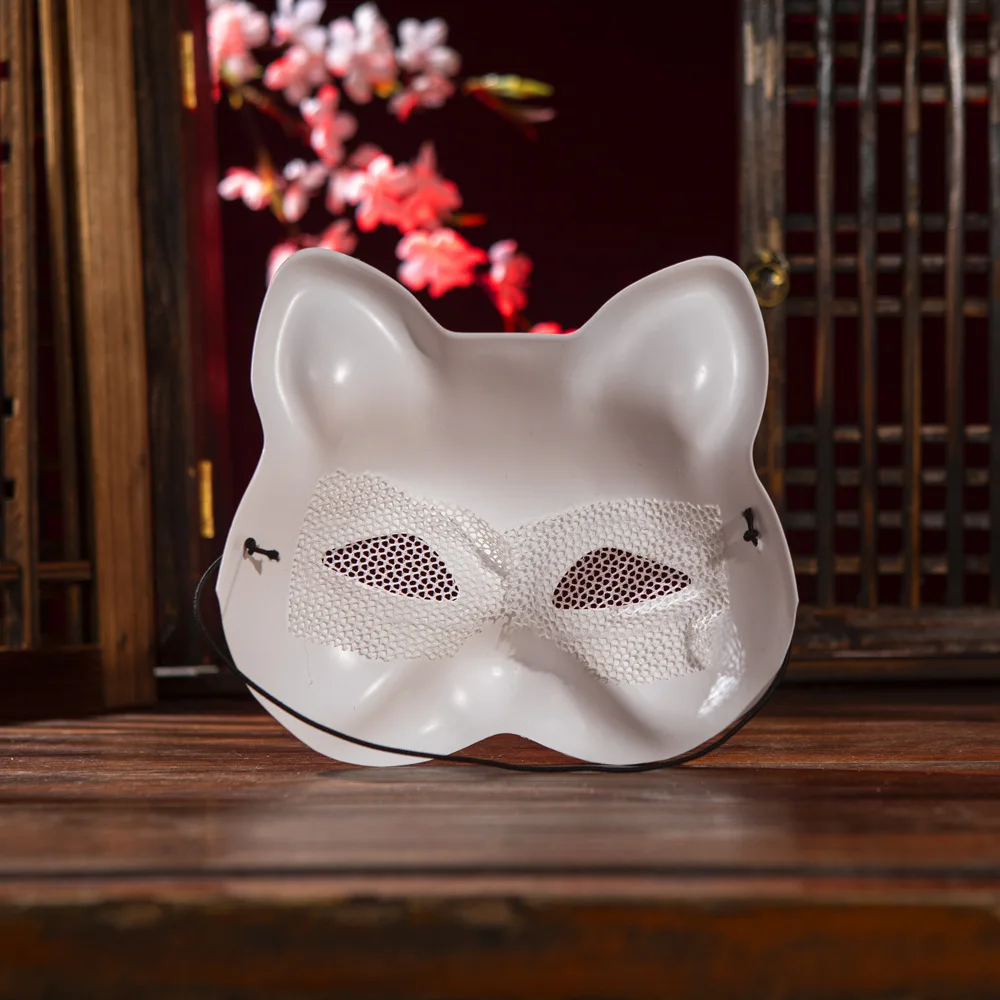 Pintados à mão Mesh Cat Máscara Facial, Branco Embrião Máscara, PVC Em Branco, Festa de Halloween, Mascarada Cosplay, Dress Up Props, DIY, 1Pc