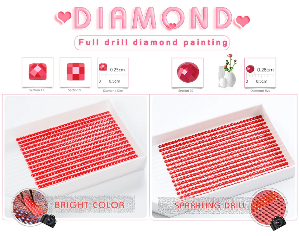 Nossas dimensões são o tamanho da imagem, o tamanho da área onde o diamante pode ser colado!
