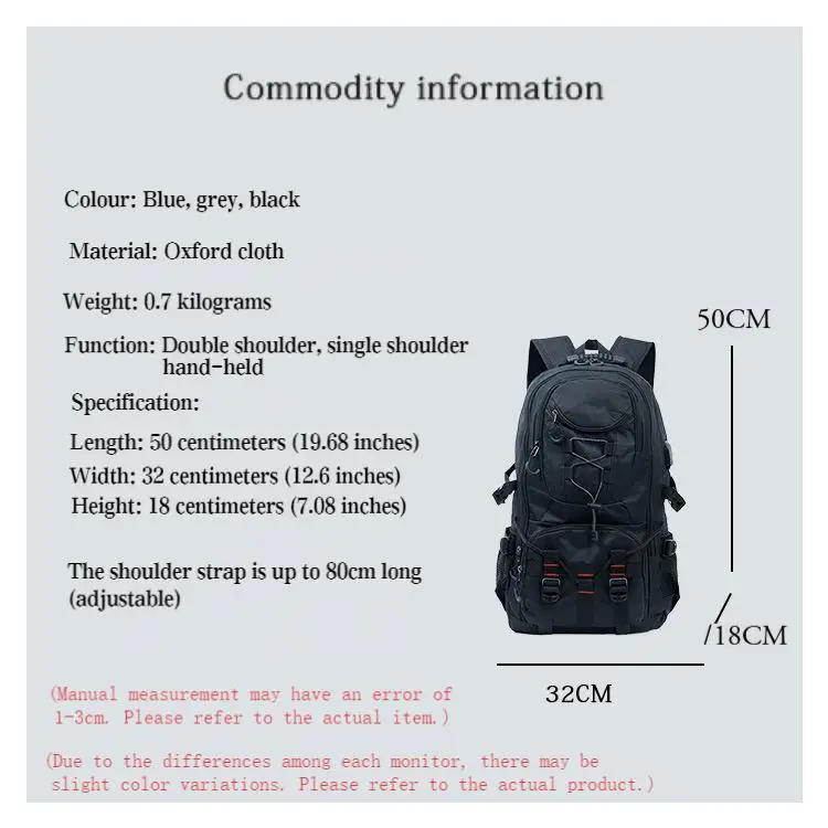 - > Piquenique de grande capacidade, mochila para caminhadas ao ar livre, mochila de viagem multifuncional resistente à água, bolsa de bagagem ao ar livre, fashionab