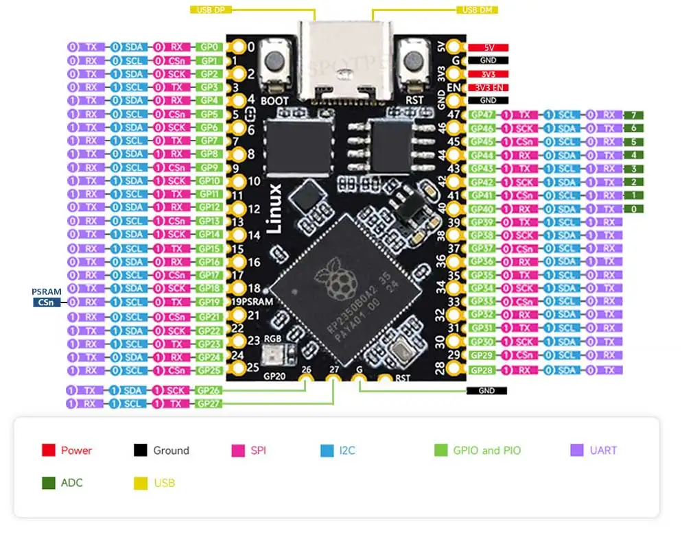 - > Placa de desenvolvimento Raspberry Pi Pico 2 Tiny RP2350-Linux Mini RP2350B com PSRAM-8MB ou sem PSRAM