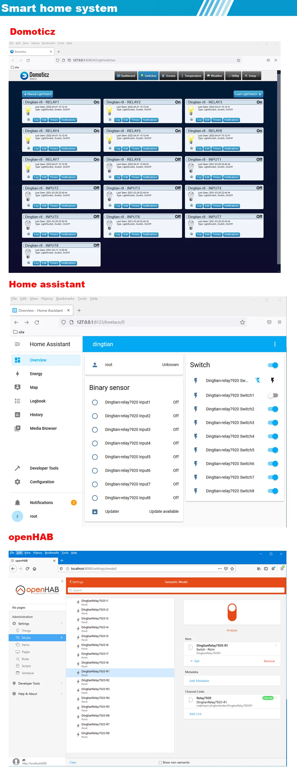 home automation system: domoticz,home assistant,openHAB,Red-Node