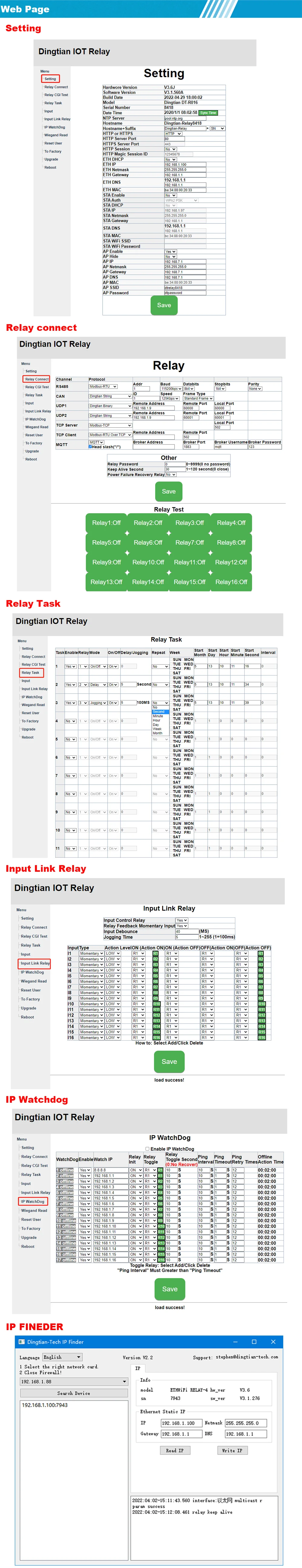 Function: relay task, IP Watchdog, OTA Upgrade
