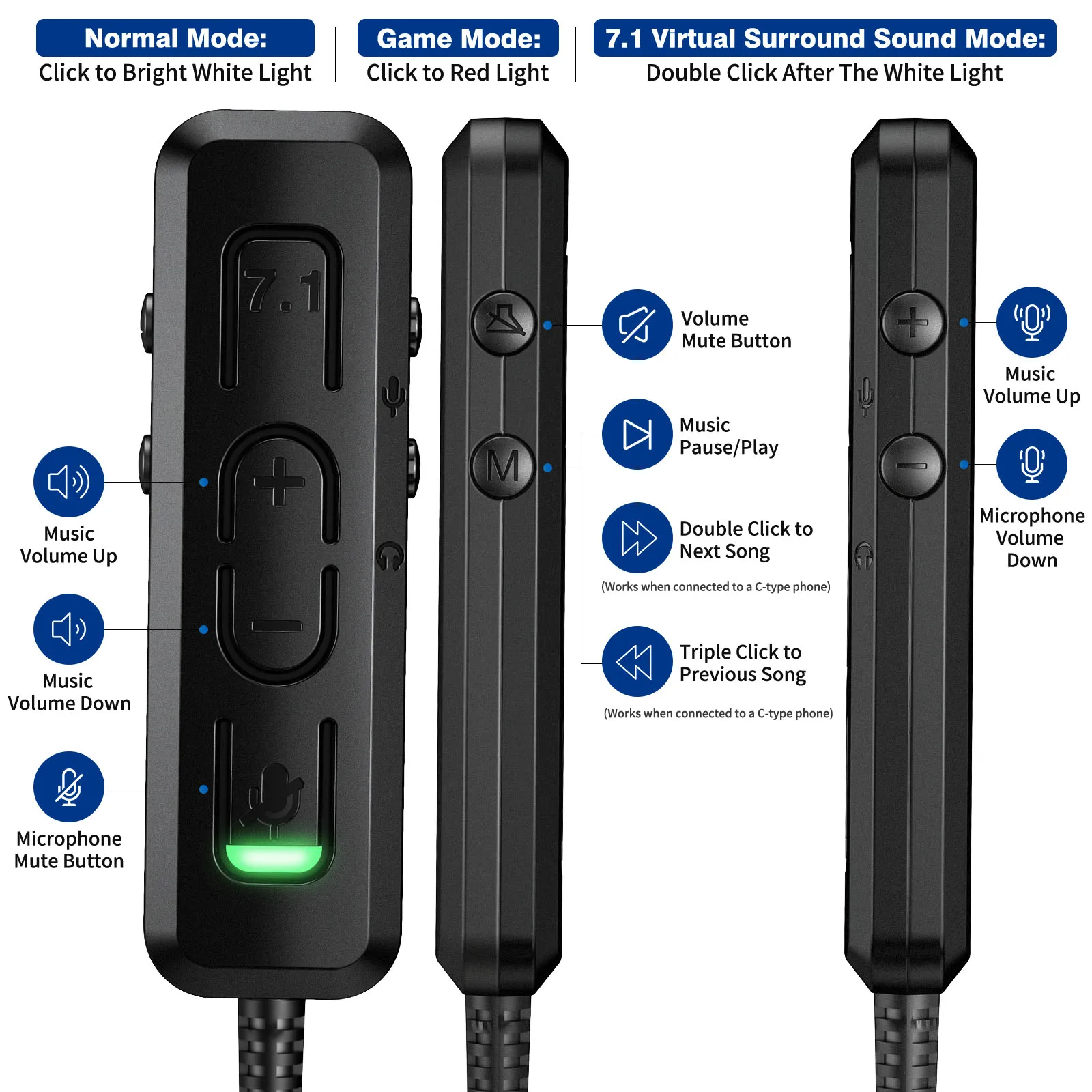 Special Feature 1: Virtual 7.1 Surround Sound: External sound card with 7.1 virtual surround sound, two sound modes for an immersive listening experience; makes it easier to capture the easily overlooked sounds of the game, with multi channel surround for enhanced sound stage.
