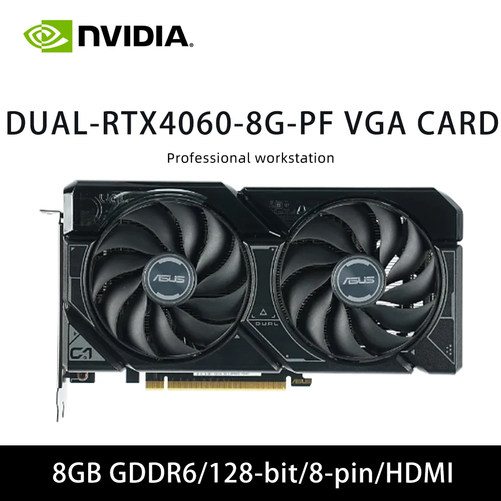 - > Placa de Vídeo ASUS NVIDIA RTX 4060 GPU DUAL-RTX4060-8G-PF 8GB GDDR6 128-bit com suporte PCI-E 4.0 8-pin HDMI DP para PC Gamer
