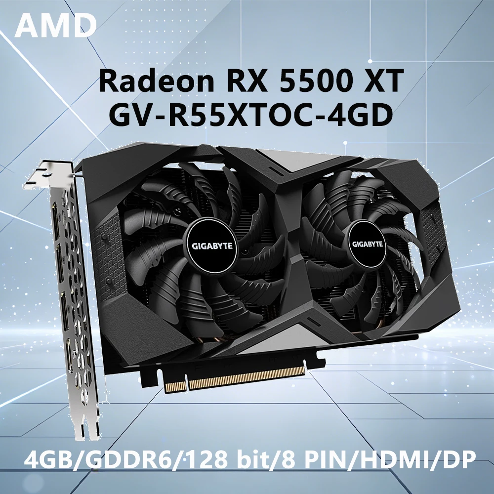 - > Placa de Vídeo GIGABYTE AMD RX 5500 XT 4GB GDDR6 128-bit GPU GV R55XTOC 4GD com interface HDMI DP e resfriamento de dupla ventoinha de 8 pinos para Desktop