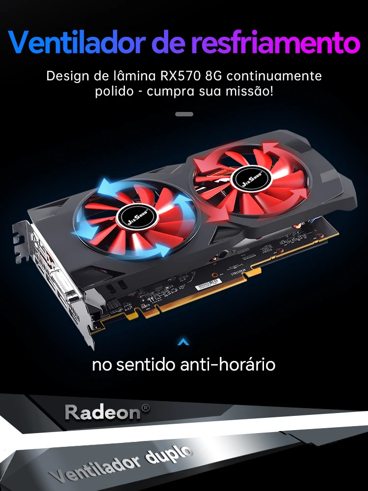 - > Placa de Vídeo JIESHUO AMD Radeon RX 570 8GB GDDR5, Melhor Custo-Benefício que RX580, HDMI DP DVI, Para Gamer, Escritório e Des