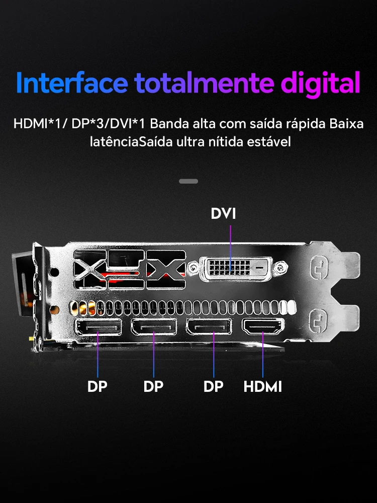 - Saídas de vídeo: 1×HDMI + 3×DisplayPort + 1×DVI