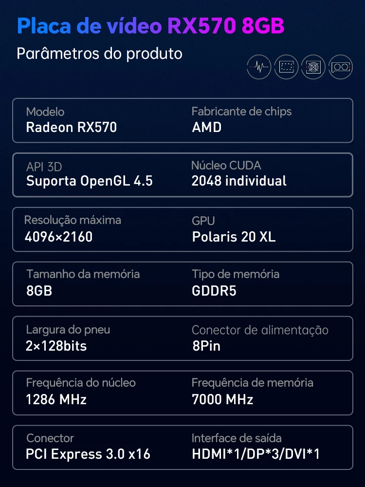 Descrição do Produto - Placa de Vídeo JIESHUO RX570 8GB GDDR5