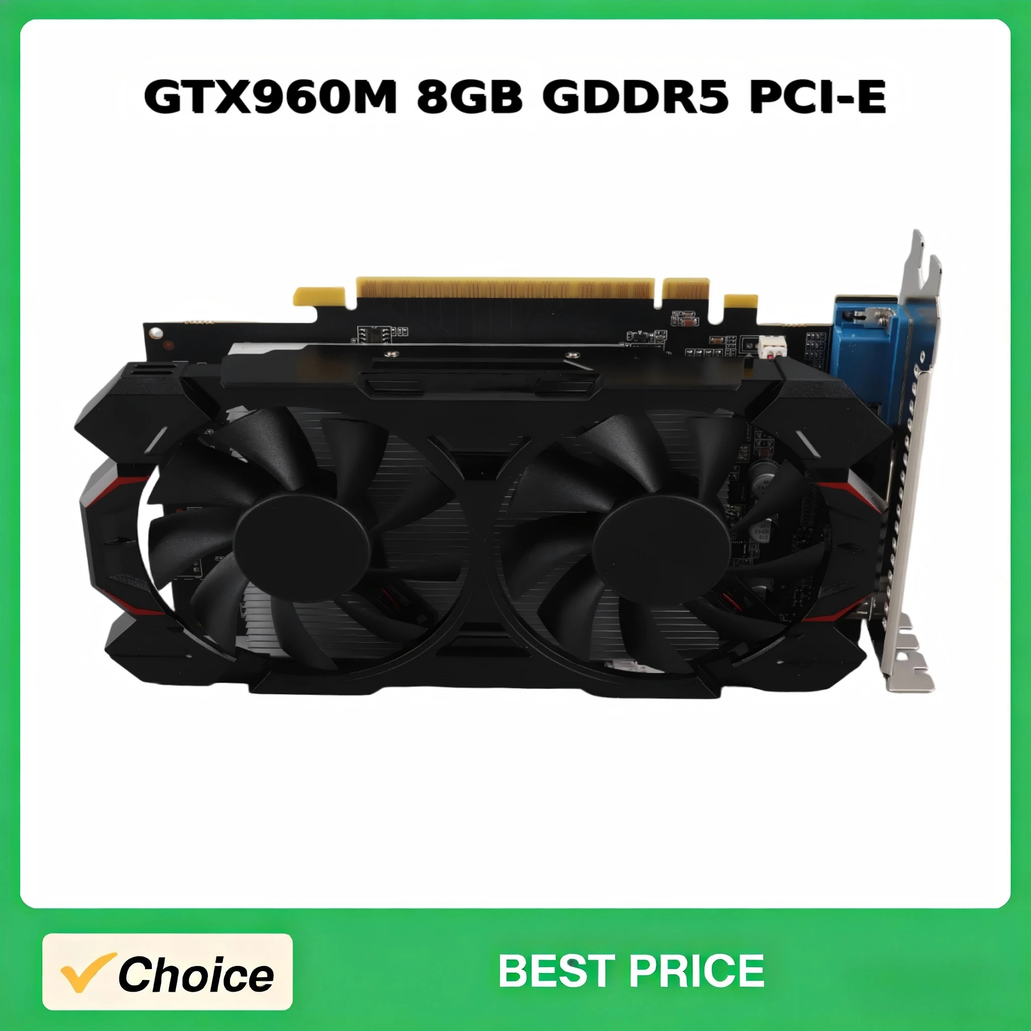 Placa de Vídeo para Jogos GTX960M 8GB GDDR5 PCI-E com Resfriamento de Ventoinha Dupla e Saída HD, GPU de Alto Desempenho para Gamers de PC