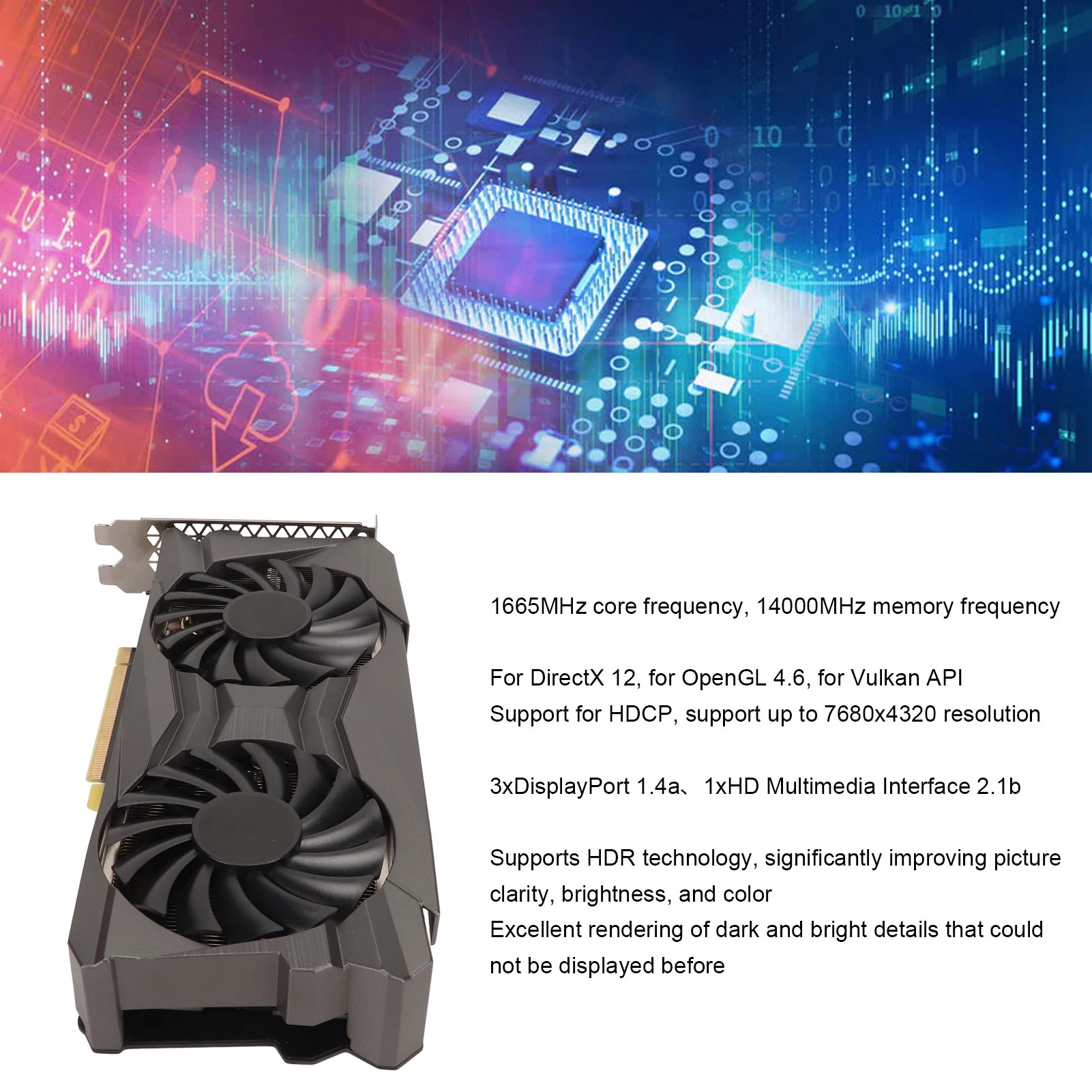 Tipo de item: Placa gráfica 8 GB GDDR6Material: PCB, Metal, ABS