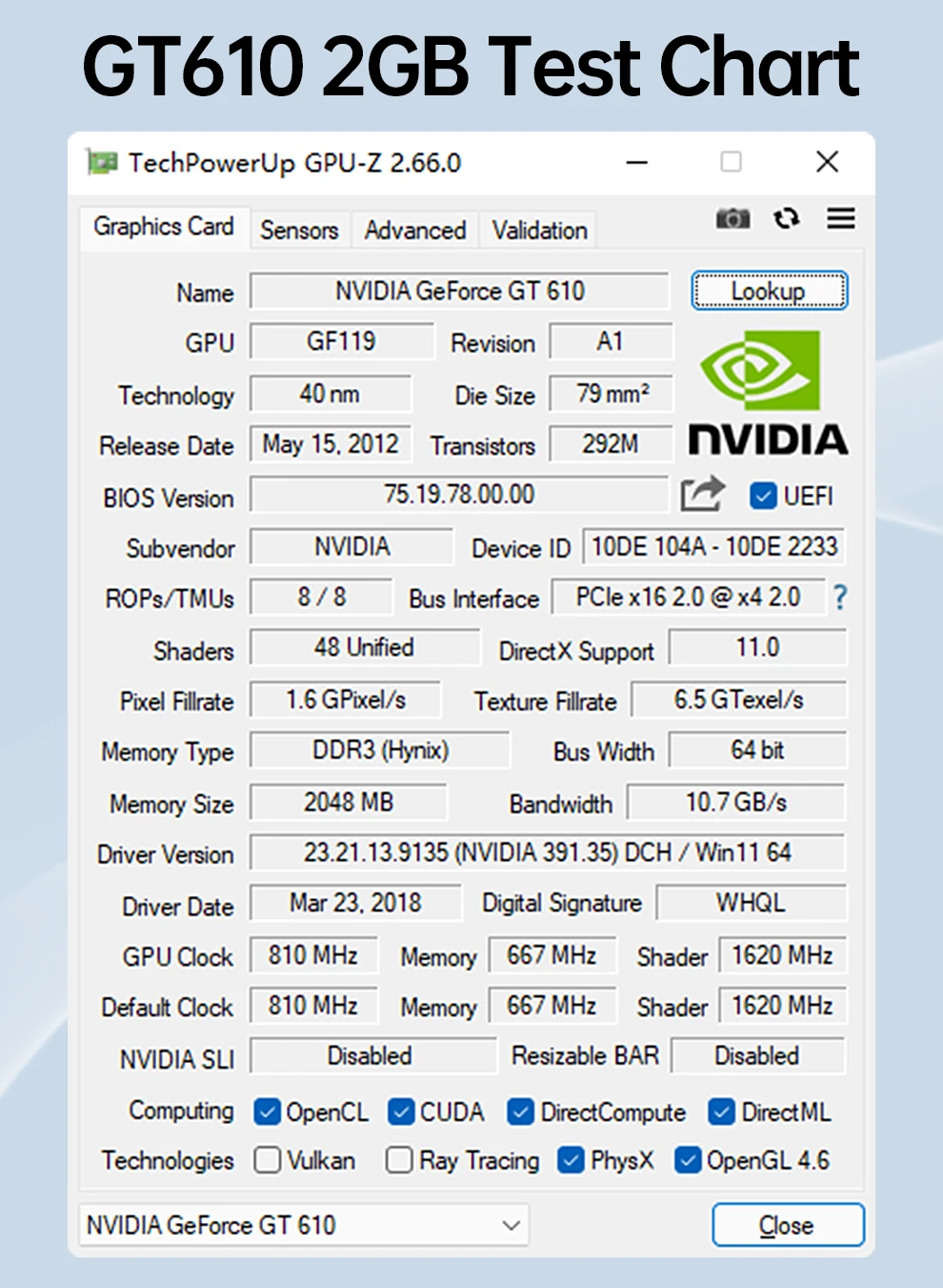 - > Placa Gráfica SOYO NVIDIA GPU GT 610 2G de Meia Altura DDR3 64Bit 40nm para Jogos e Vídeos - Componentes para Computador Desktop GT610
