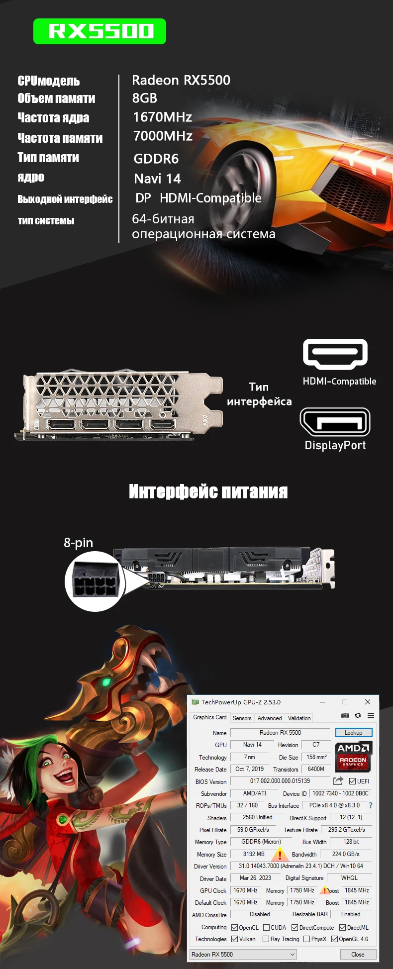 Veineda Graphics Card RX5500 8GB GDDR6 RX 5500 Video Cards PCI Express 4.0 X Desktop RX5500 8G 128BiT