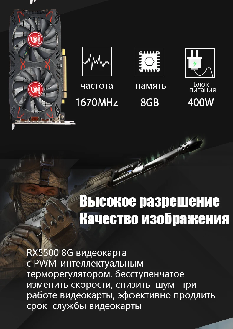 - > Placa gráfica Veineda RX 5500 8GB Placa De Video 128bit GDDR6 PC Gaming para AMD Radeon rx 5500 8gb PCI-E 4.0×8