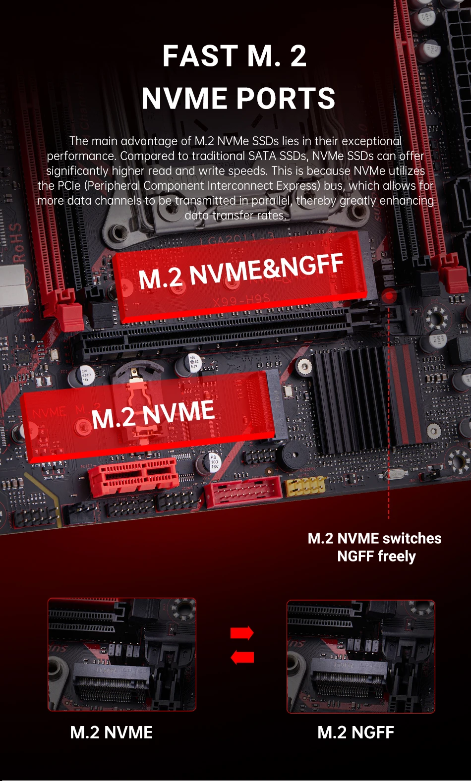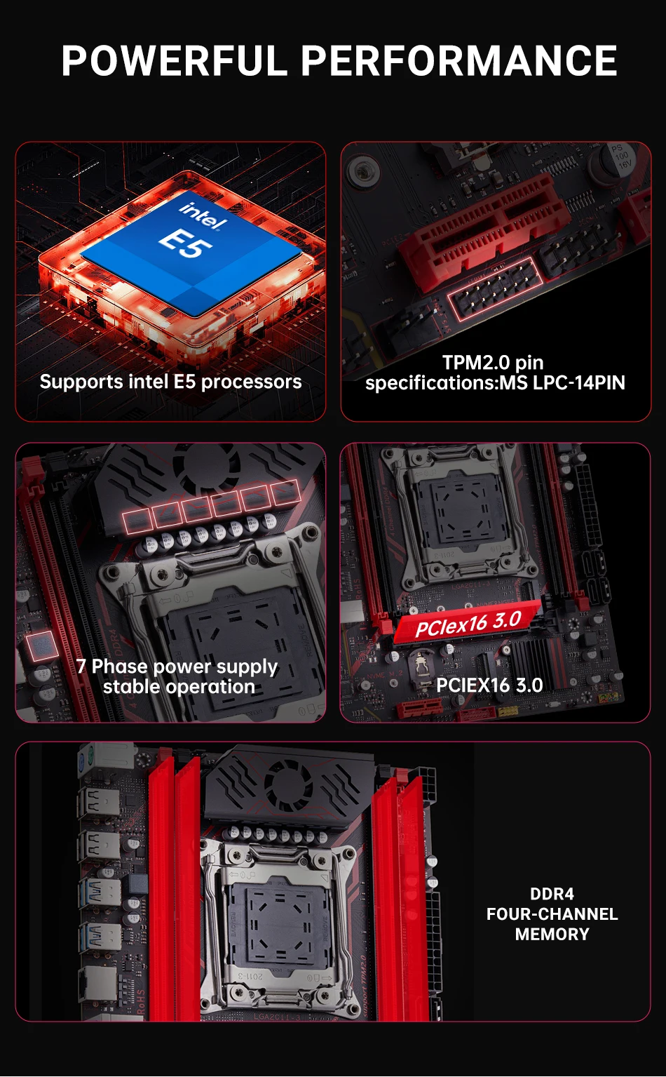 - > Placa-mãe QIYIDA X99 TPM 2.0Interface LGA 2011 3 com NVME NGFF M.2 Suporte 4 canais X99 C612chip Memória DDR4 SATA3.0 USB3.0