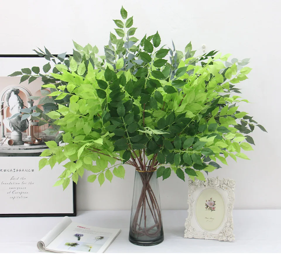 Plantas verdes artificiais grama seda trompete folha flor falsa casamento floral linha acessórios vaso casa hotel decoração vegetação