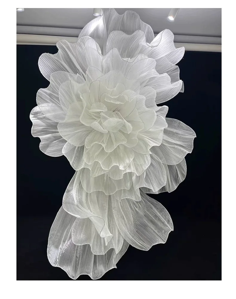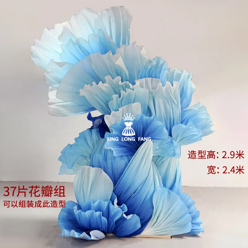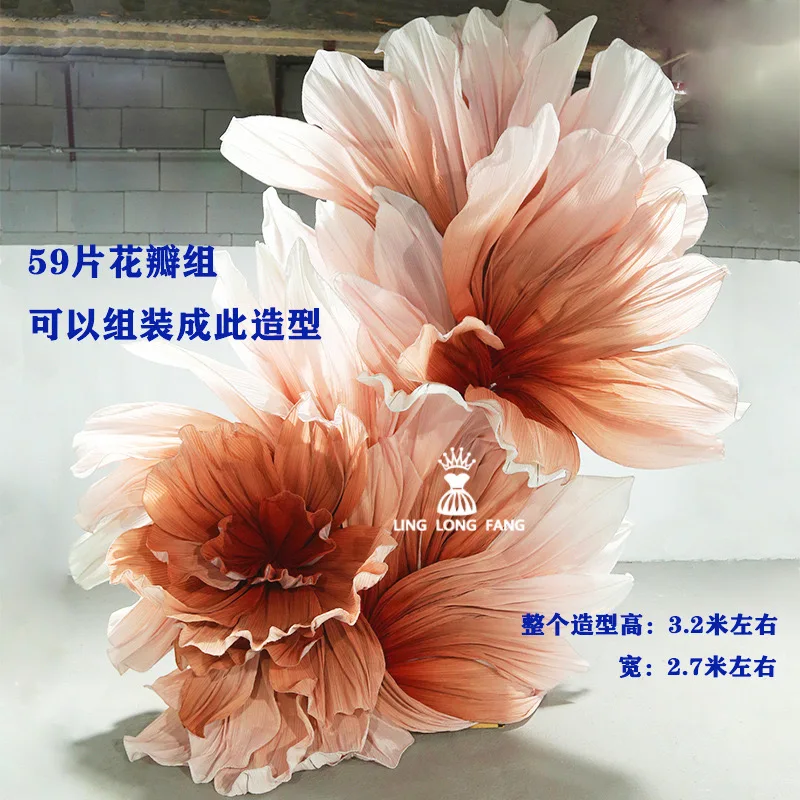 Plissado OrganzaWedding gigante floral instalação modelagem textura pétalas de organza, janela de casamento fotografia fundo de palco