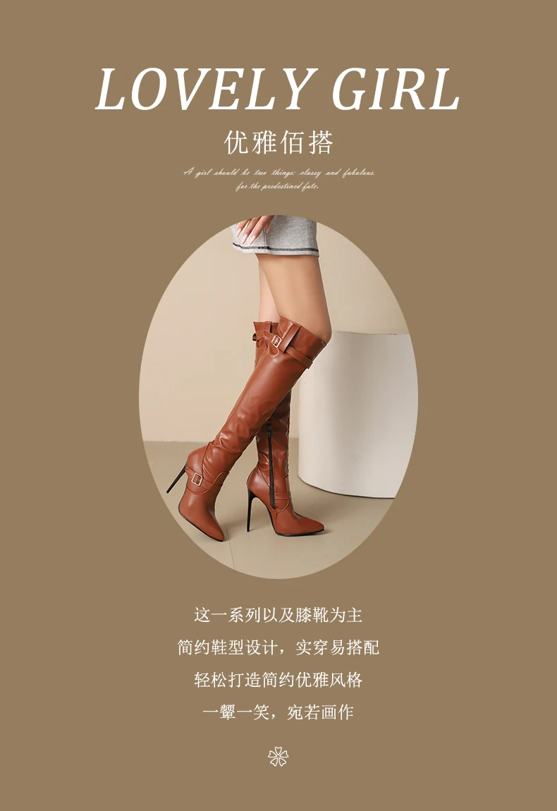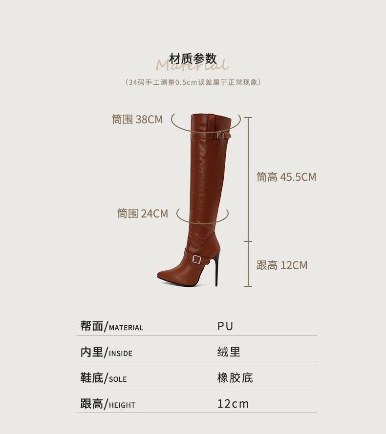 - > Plus size apontou ultra alto fino sexy outono novas botas longas com alças duplas fivela zíper lateral botas altas do joelho feminino