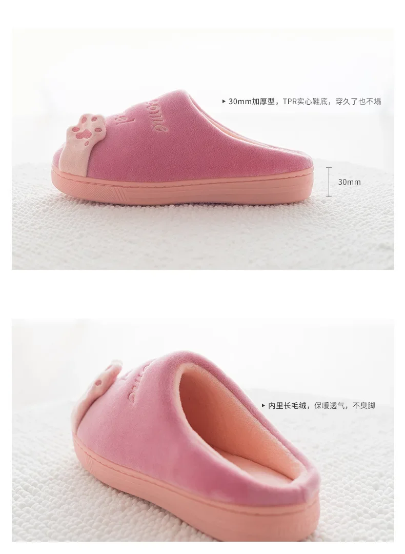 - > Plush Cartoon Cat Slippers para mulheres, sapatos quentes, redondos Toe Flats, interior, casa, quarto, chão, senhoras, peludo, inverno