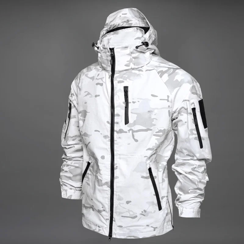 - > Poliéster algodão mcap neve camuflagem casaco branco ao ar livre deslocamento primavera e outono masculino e feminino topo tático