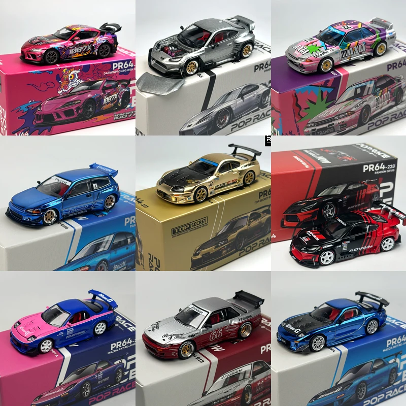 POPRACE 1:64 TOP SECRET GT300 SUPRA Chrome Gold RX7 GR86 S13 Modelo de Carro em Liga 277 103 223 235 285