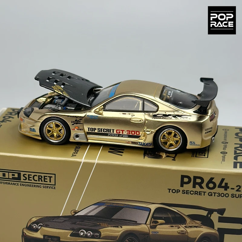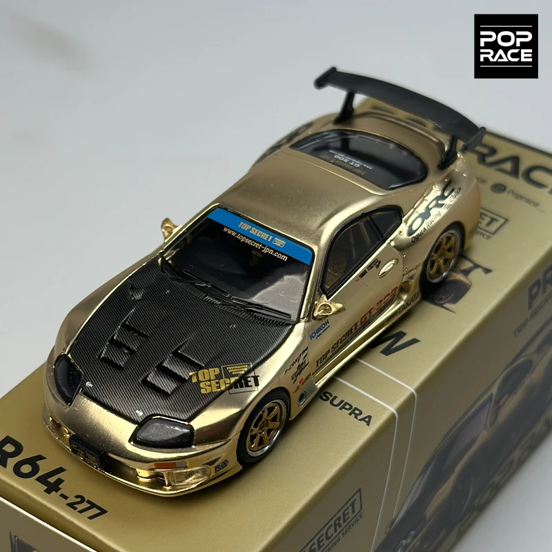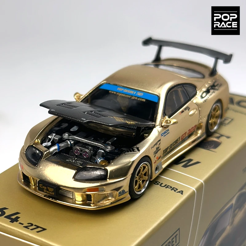 - > POPRACE 1:64 TOP SECRET GT300 SUPRA Chrome Gold RX7 GR86 S13 Modelo de Carro em Liga 277 103 223 235 285