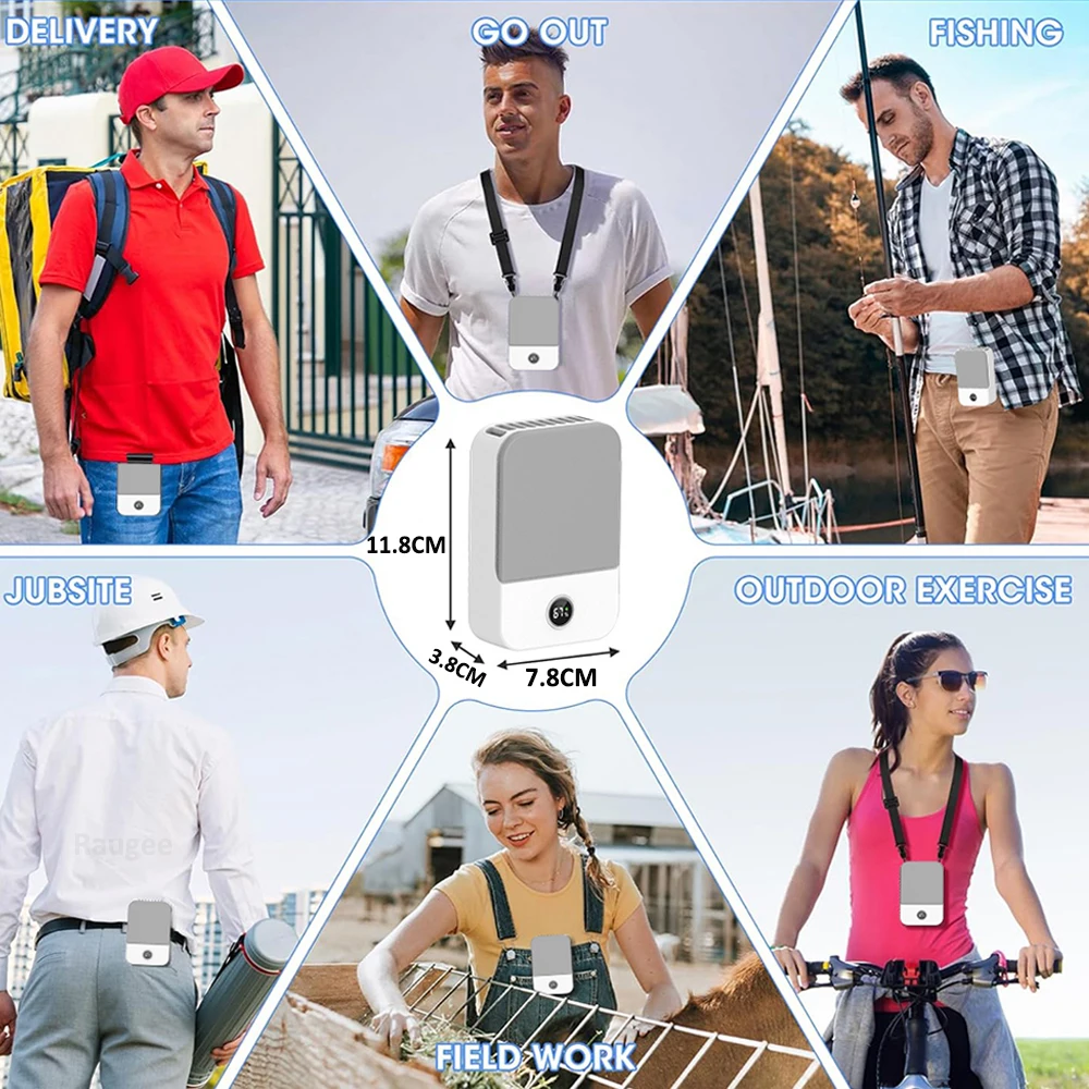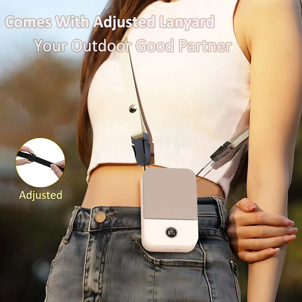 - > Portátil ao ar livre Mini pendurado pescoço ventilador, Bladesess cintura Air Cooler, vento forte, USB, 3 engrenagem, 2000mAh
