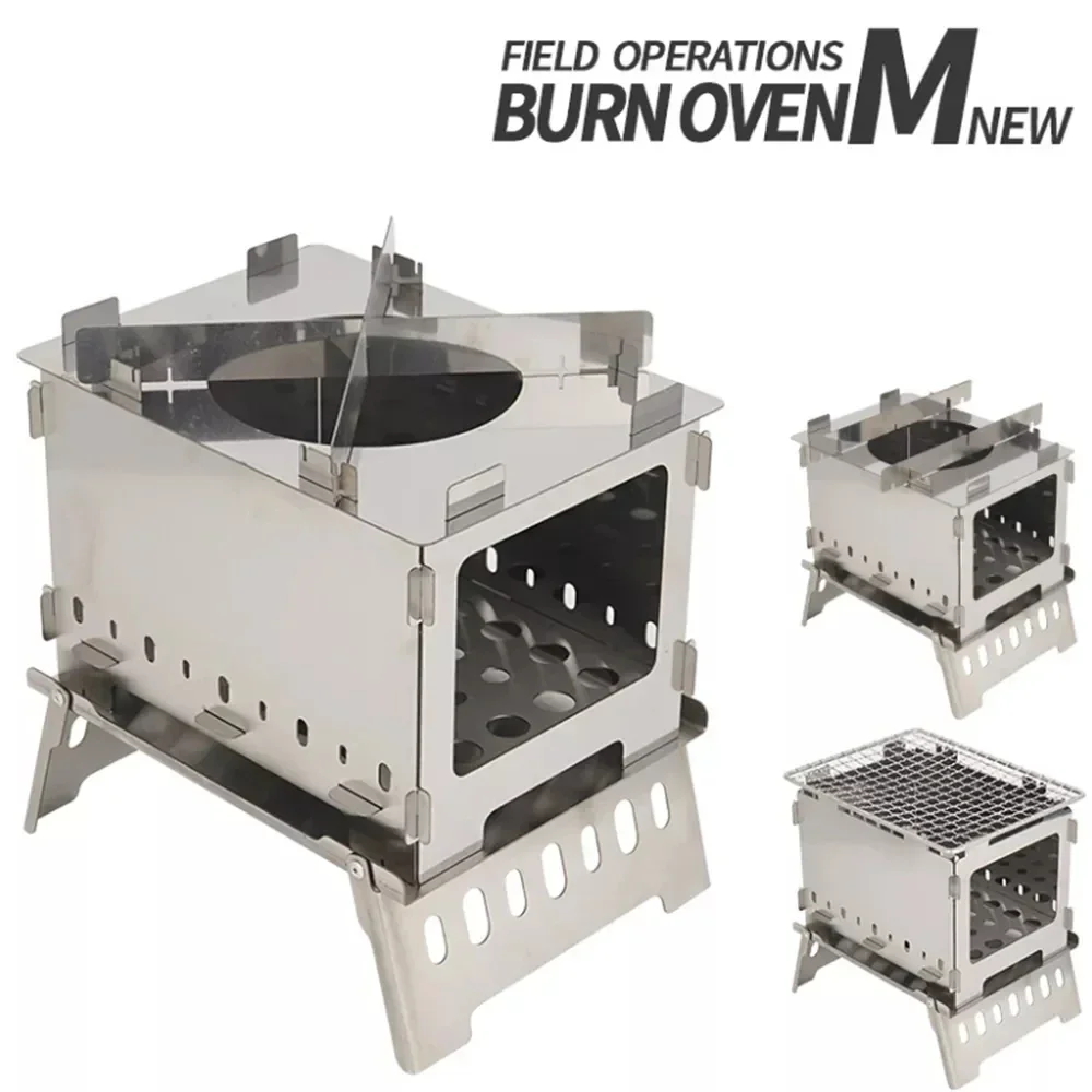 Portátil Camping Tent Fogão, aquecedor de lenha ao ar livre, montagem rápida, mochila, caminhadas, fogão ardente de aço inoxidável