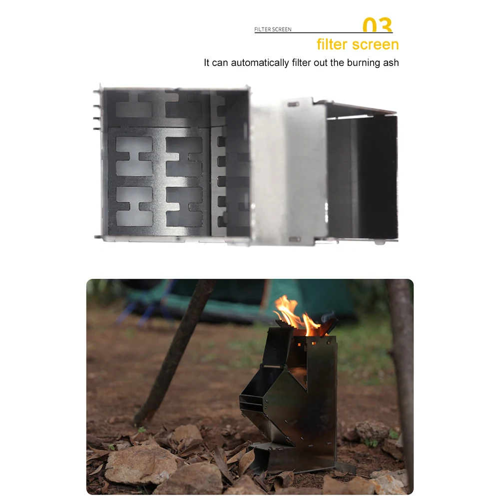 Portátil destacável queimador de madeira churrasco foguete fogão aço inoxidável ao ar livre queima de madeira mochila acampamento tenda fogão para piquenique churrasco