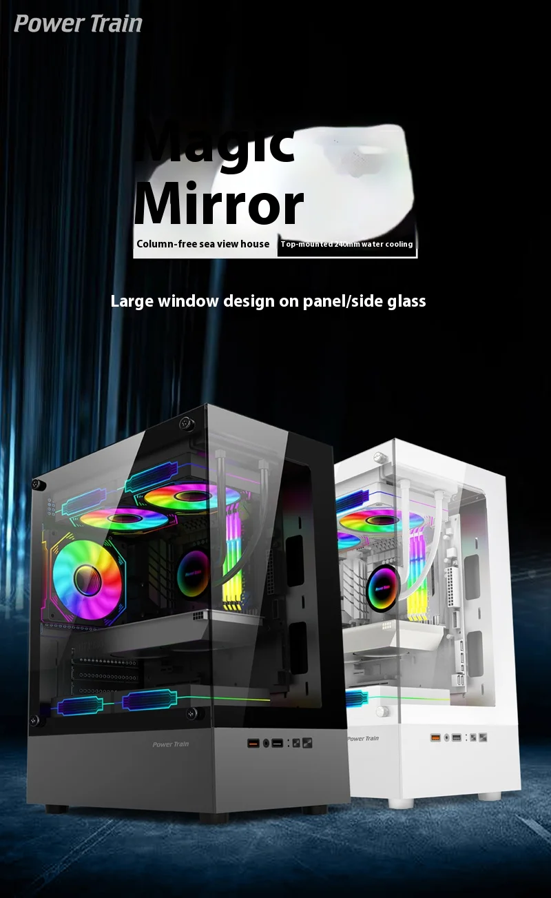- > Power Train Illusionary Realm PC case M-ATX ITX Sea view Side Transparent Computer Case 240 Water Cooler gabinetes gamer