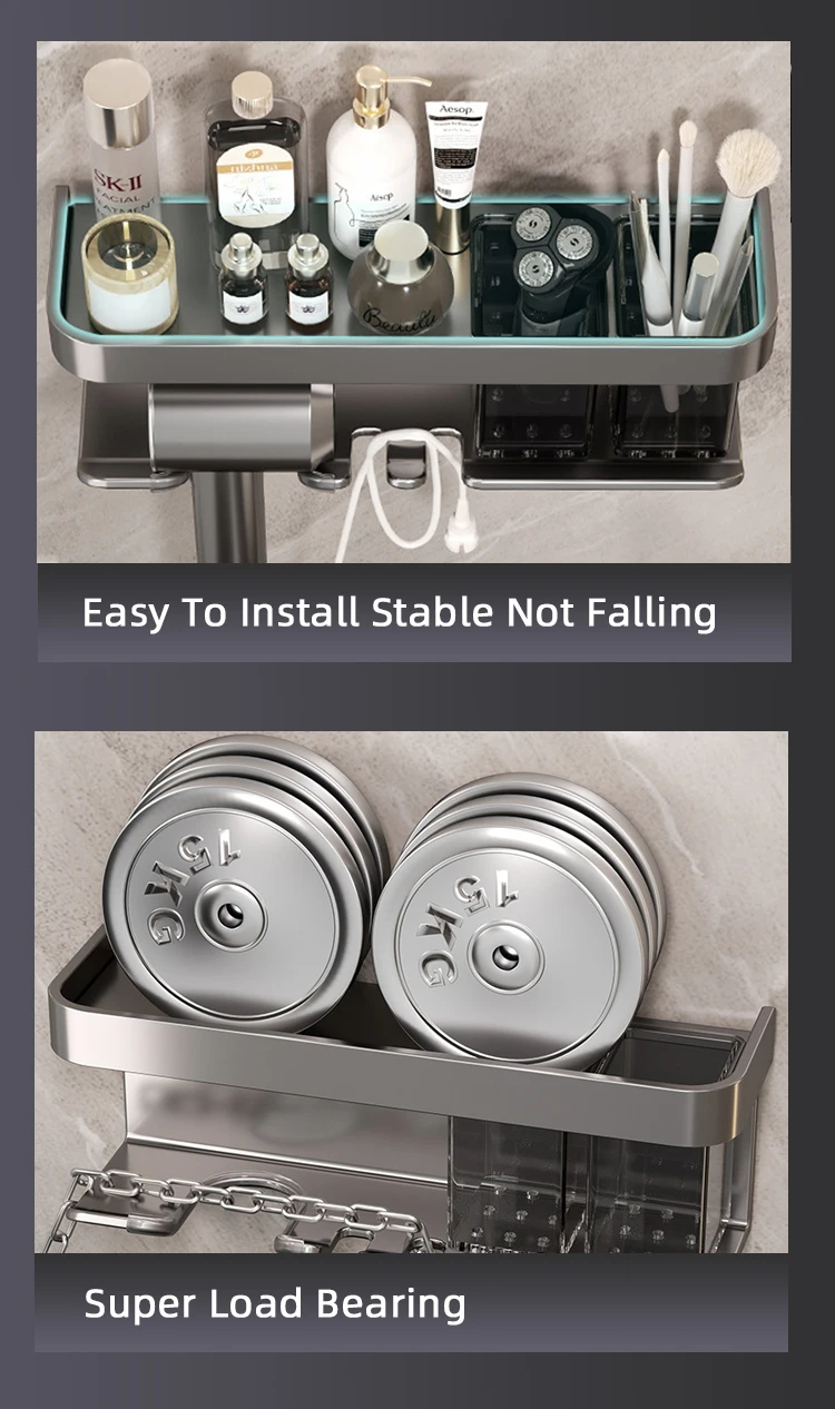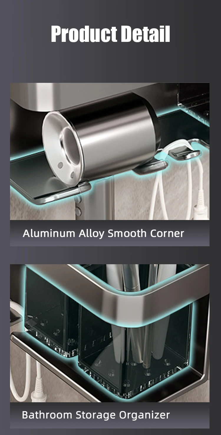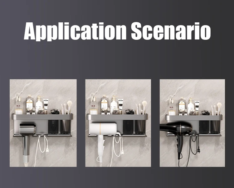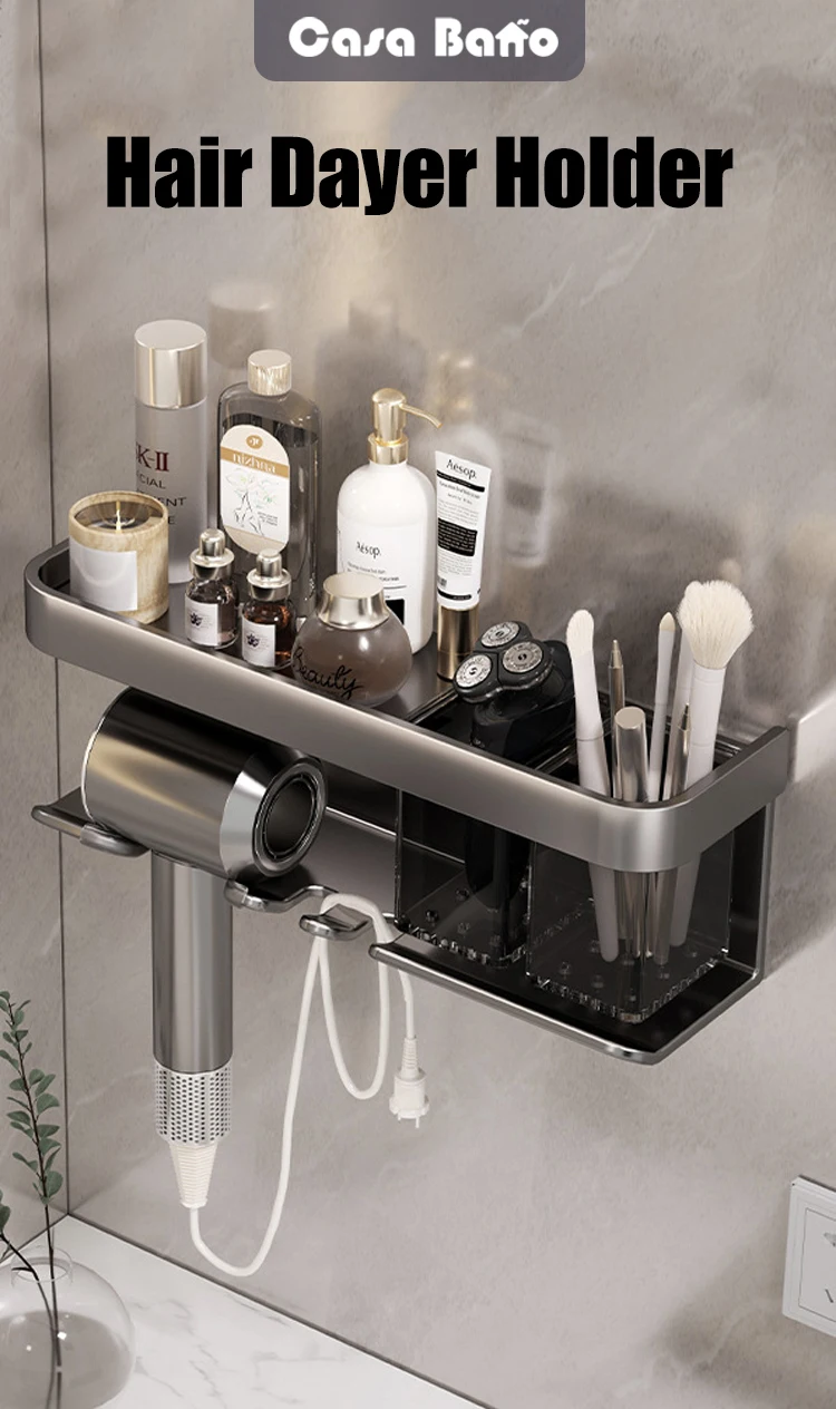 prateleira de banheiro maquiagem armazenamento de organização liga de alumínio suporte secador de cabelo acessórios de banheiro prateleira parede