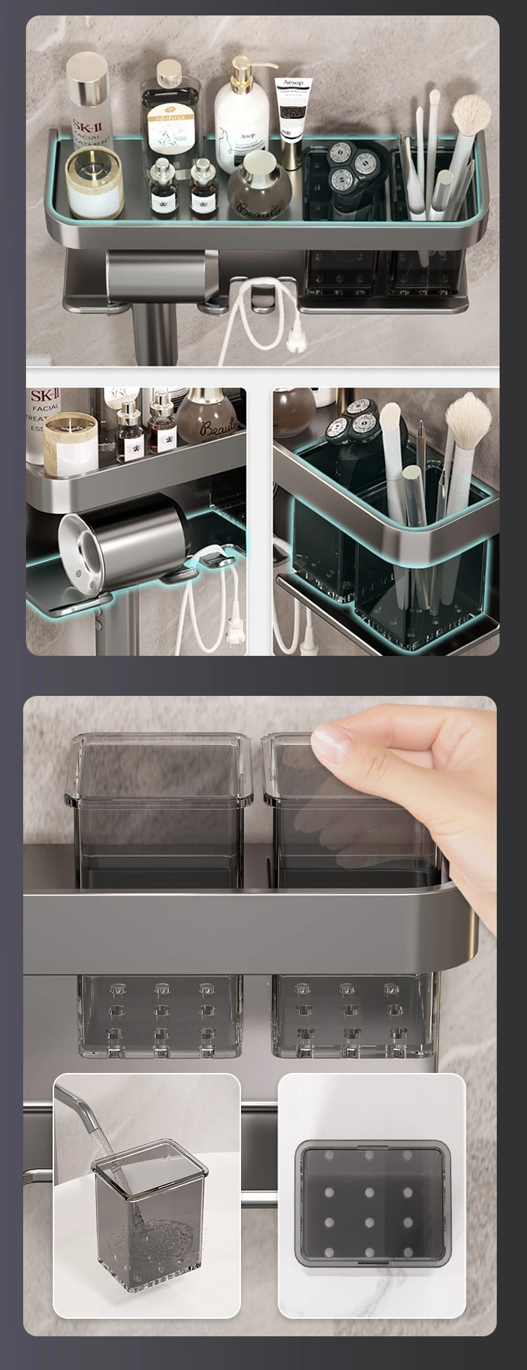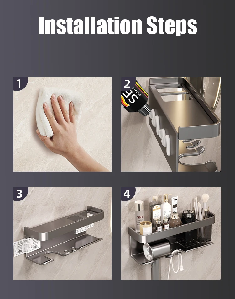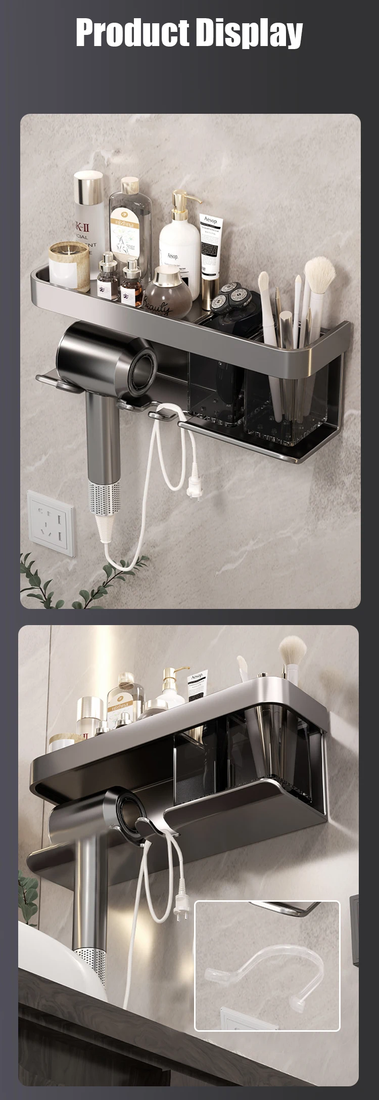 prateleira de banheiro maquiagem armazenamento de organização liga de alumínio suporte secador de cabelo acessórios de banheiro prateleira parede