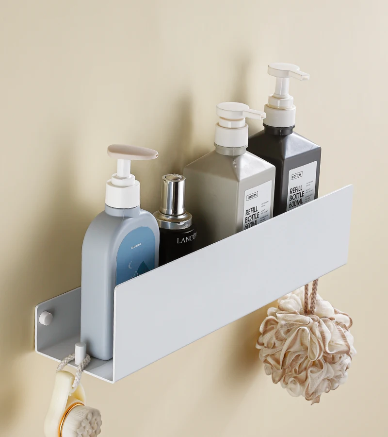 Prateleira de chuveiro branca com gancho, alumínio, itens de banheiro, canto, banho, shampoo, rack de armazenamento, organizador de parede de cozinha