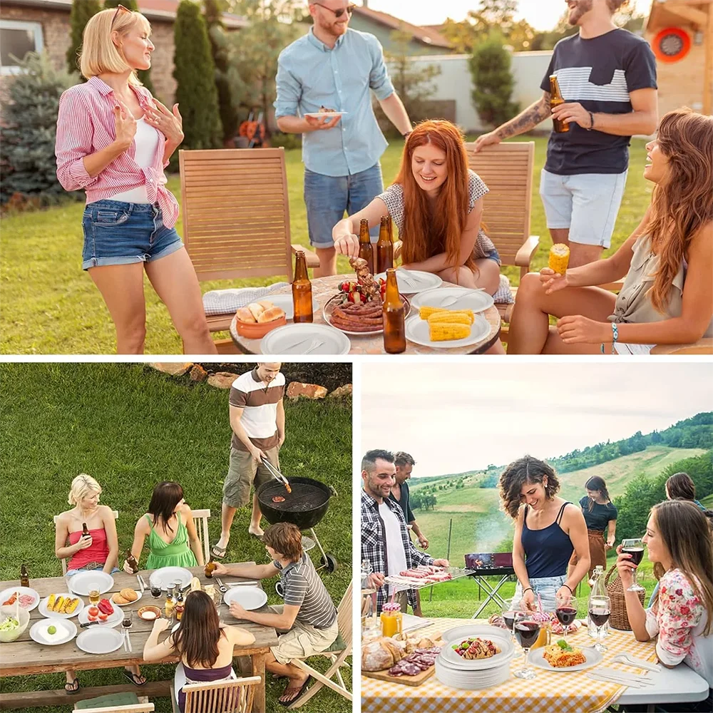 Pratos de papel compostável com talheres, utensílio biodegradável descartável, louça ecológica, inclui talheres, 40 peças