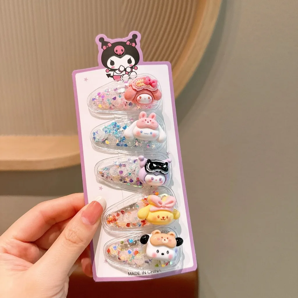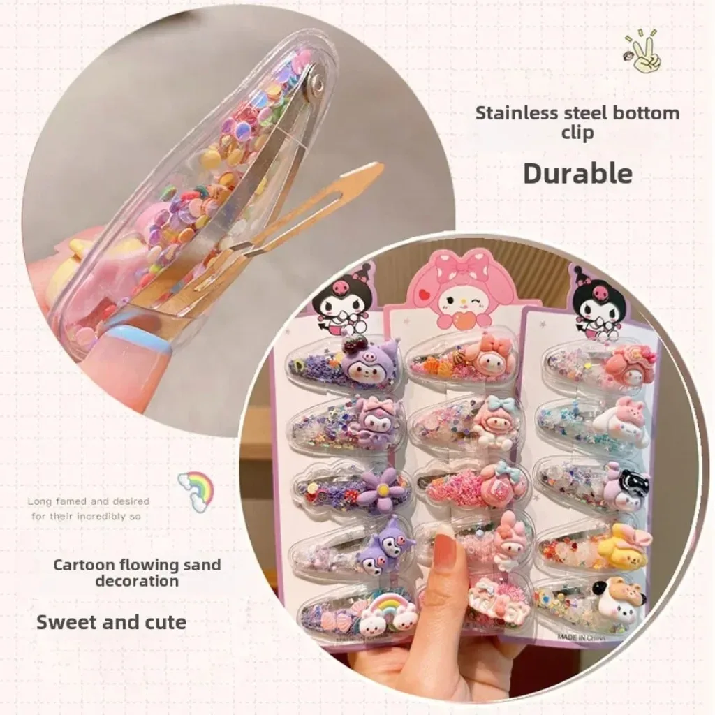 Presilha de Cabelo Hello Kitty Infantil com Areia Fluida, Novo Estilo, Presilha Fofa para Estudantes com Cabelos Rebeldes, Presilha BB para Meninas, Presilha Doce para Cabelo