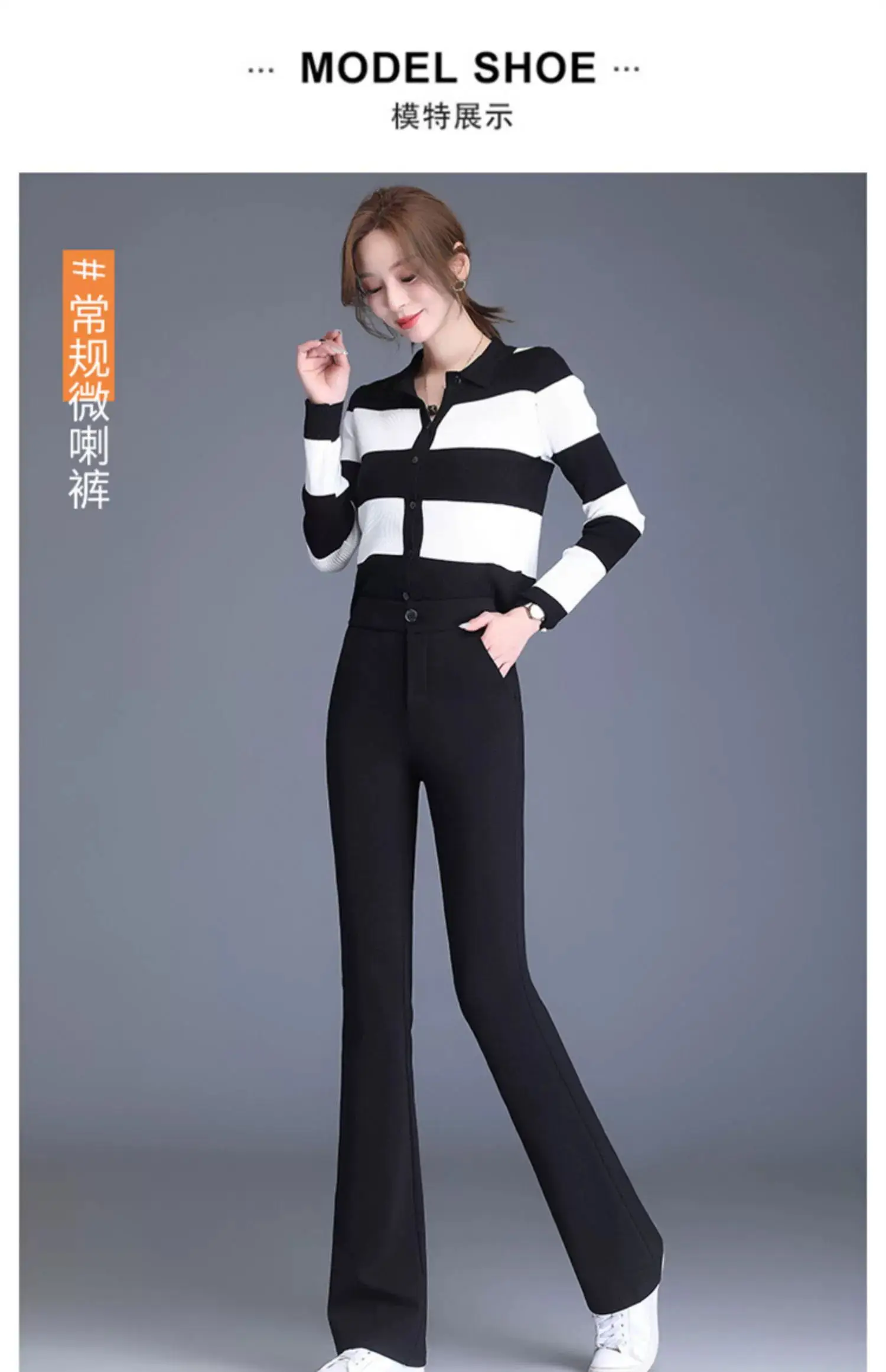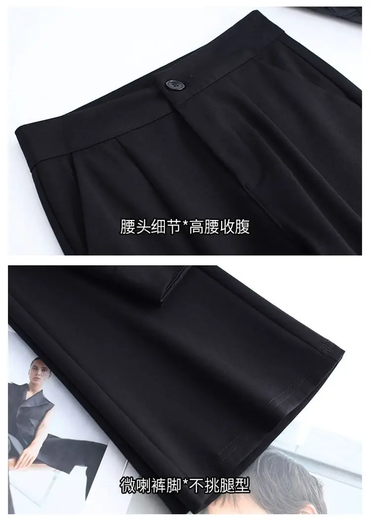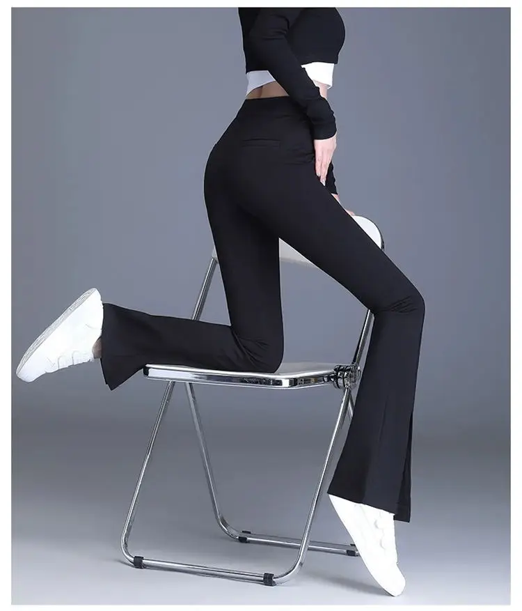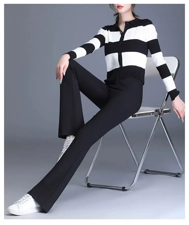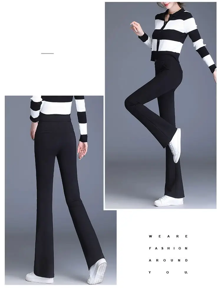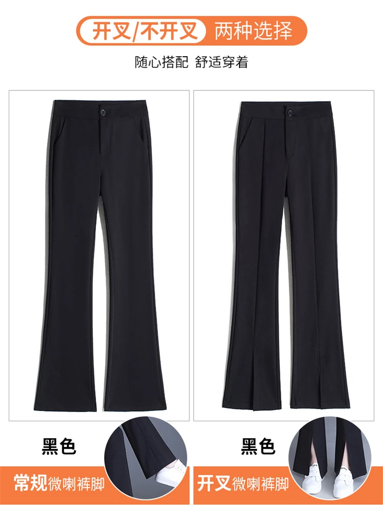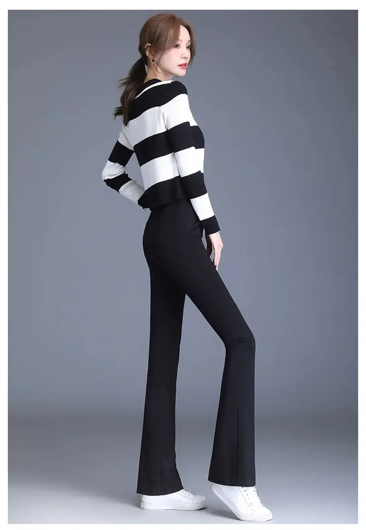 Preto casual fino ajuste sino inferior para mulheres de cintura alta primavera e outono elástico fino ajuste casual pendurado sino calças inferiores