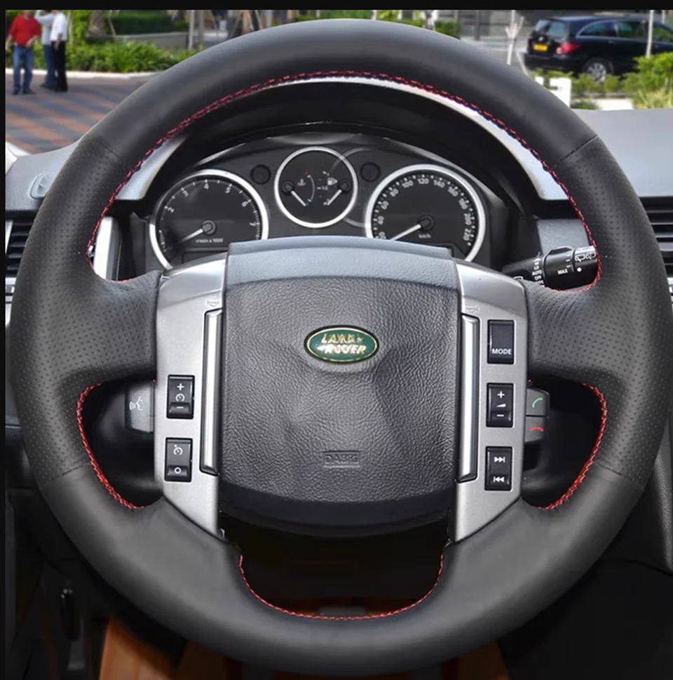 - > Preto de couro de microfibra tampa do volante do carro, acessórios do carro, DIY, Land Rover Freelander 2 2007-2012