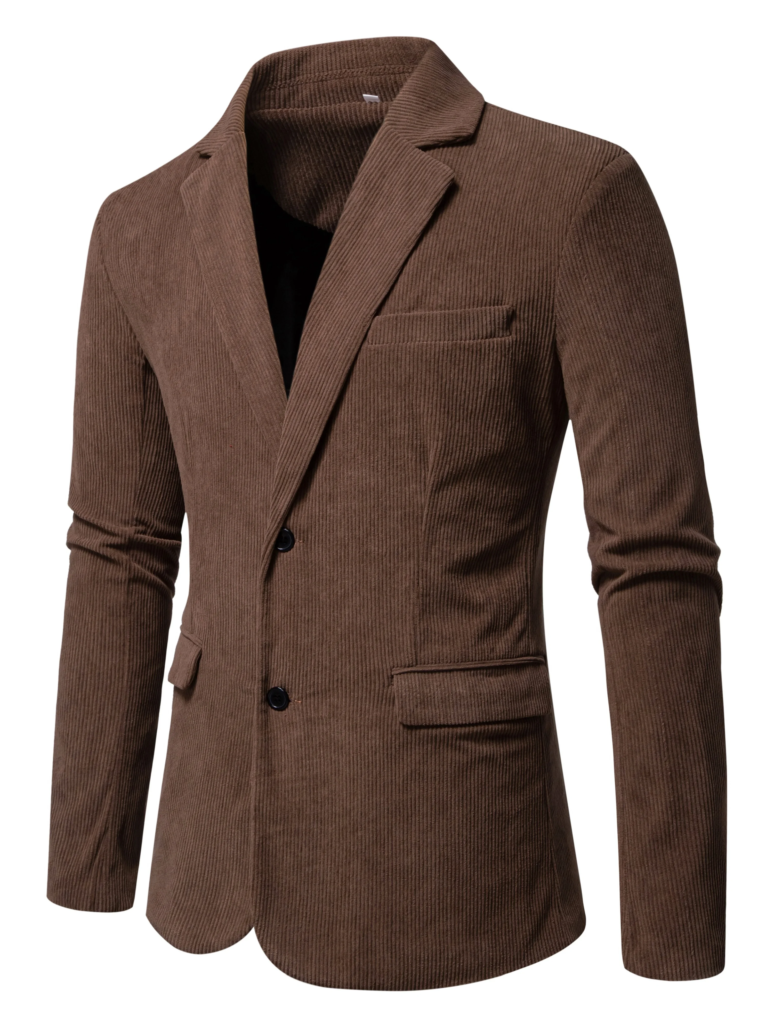 - > Primavera e outono masculino nova moda lazer commuter cor sólida duplo botão jaqueta de veludo