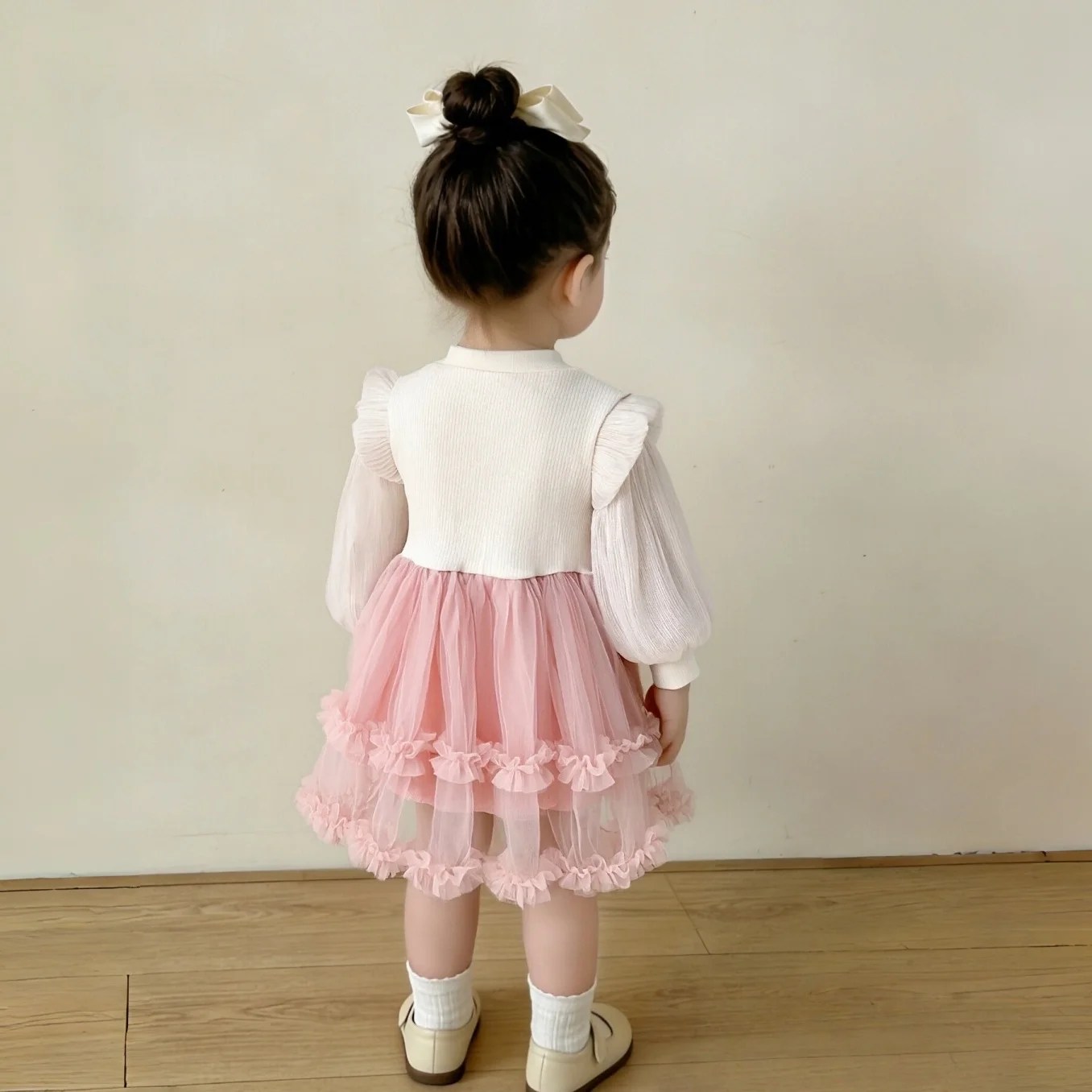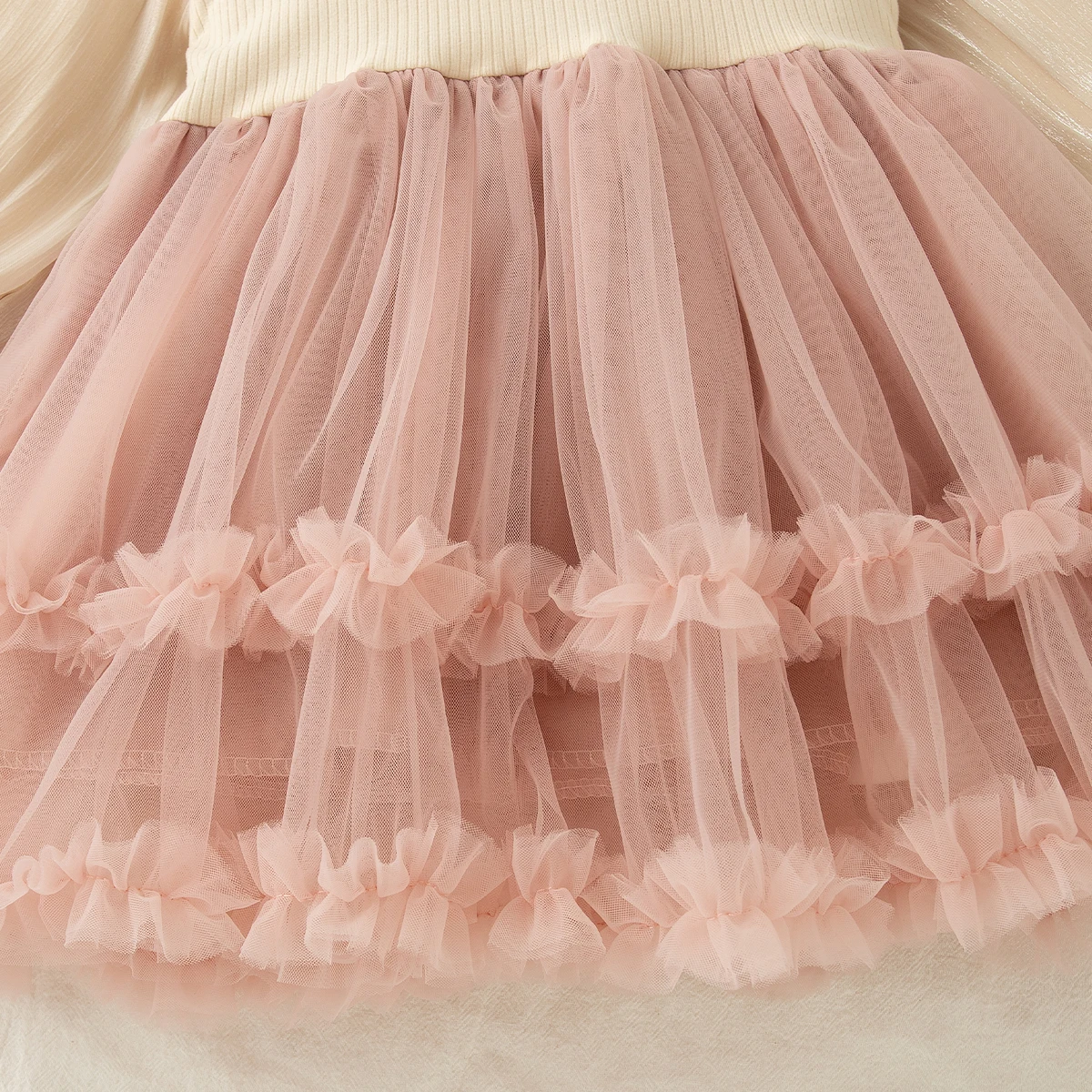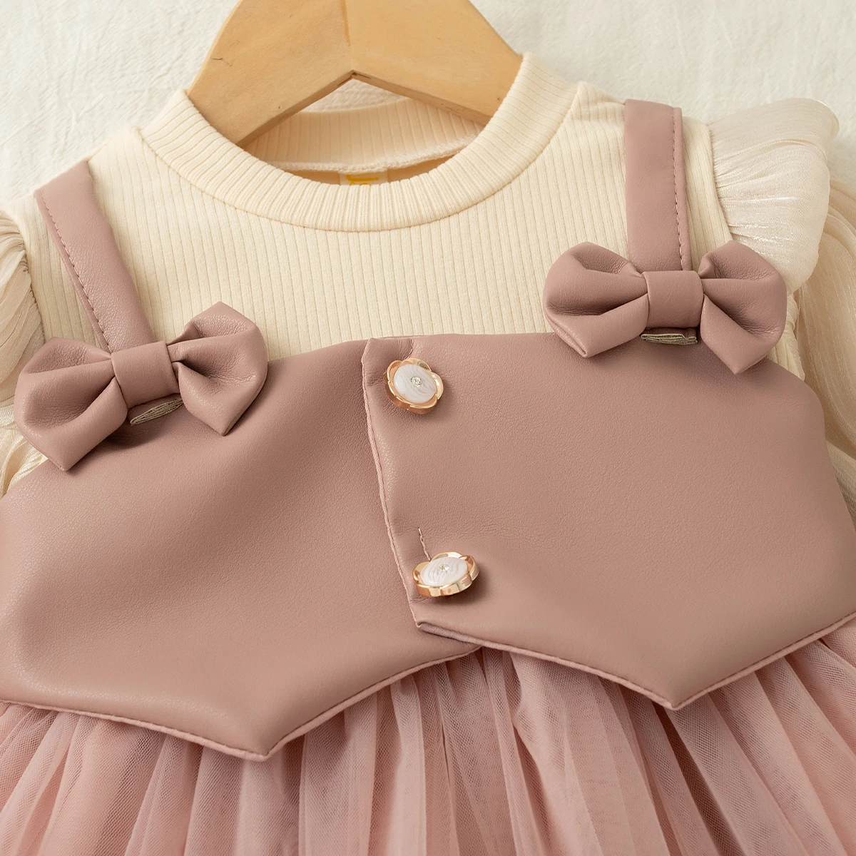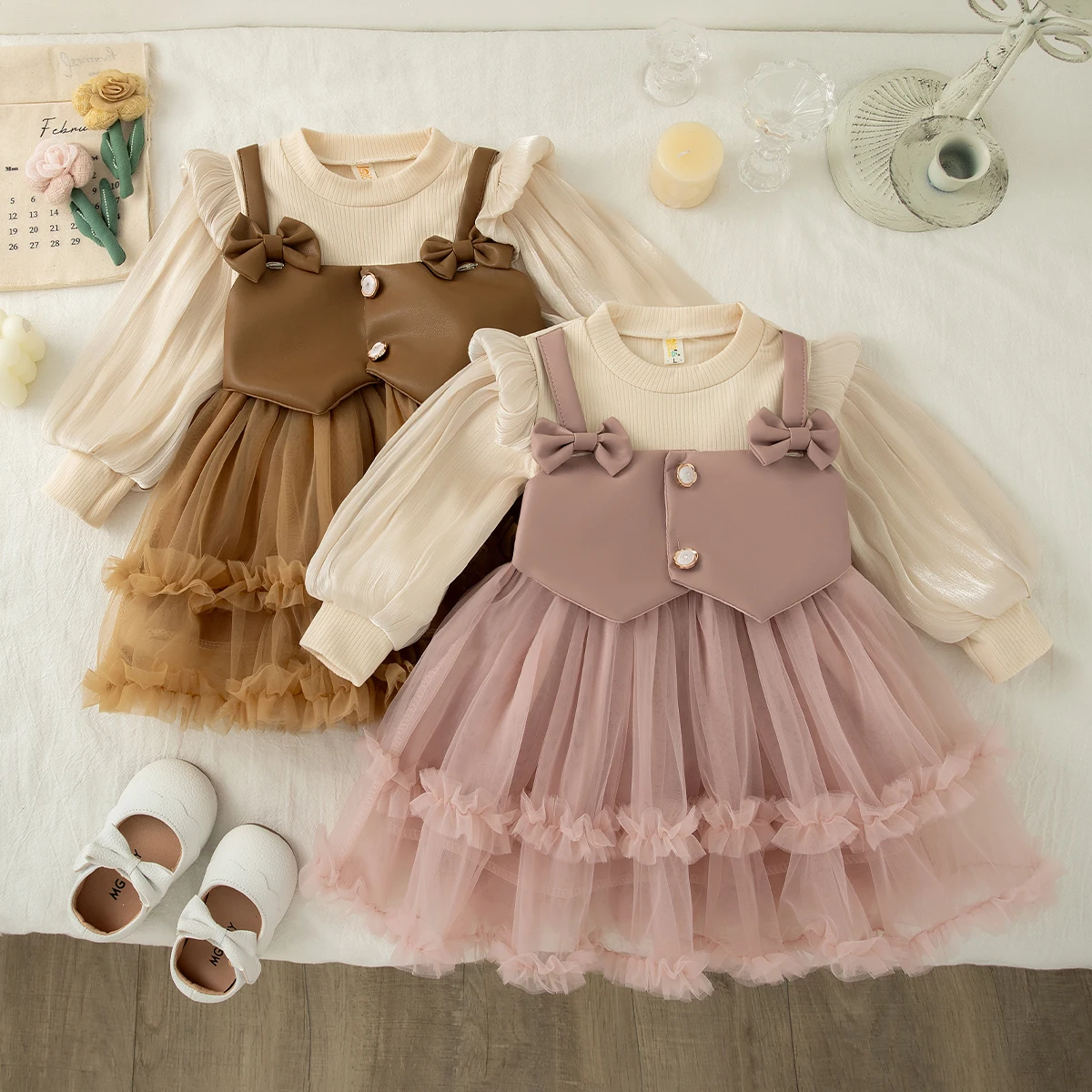 - > Primavera e outono novo vestido da menina do bebê doce malha vestido de princesa, vestido de festa da menina do bebê roupas infantis 6 meses a 3 anos