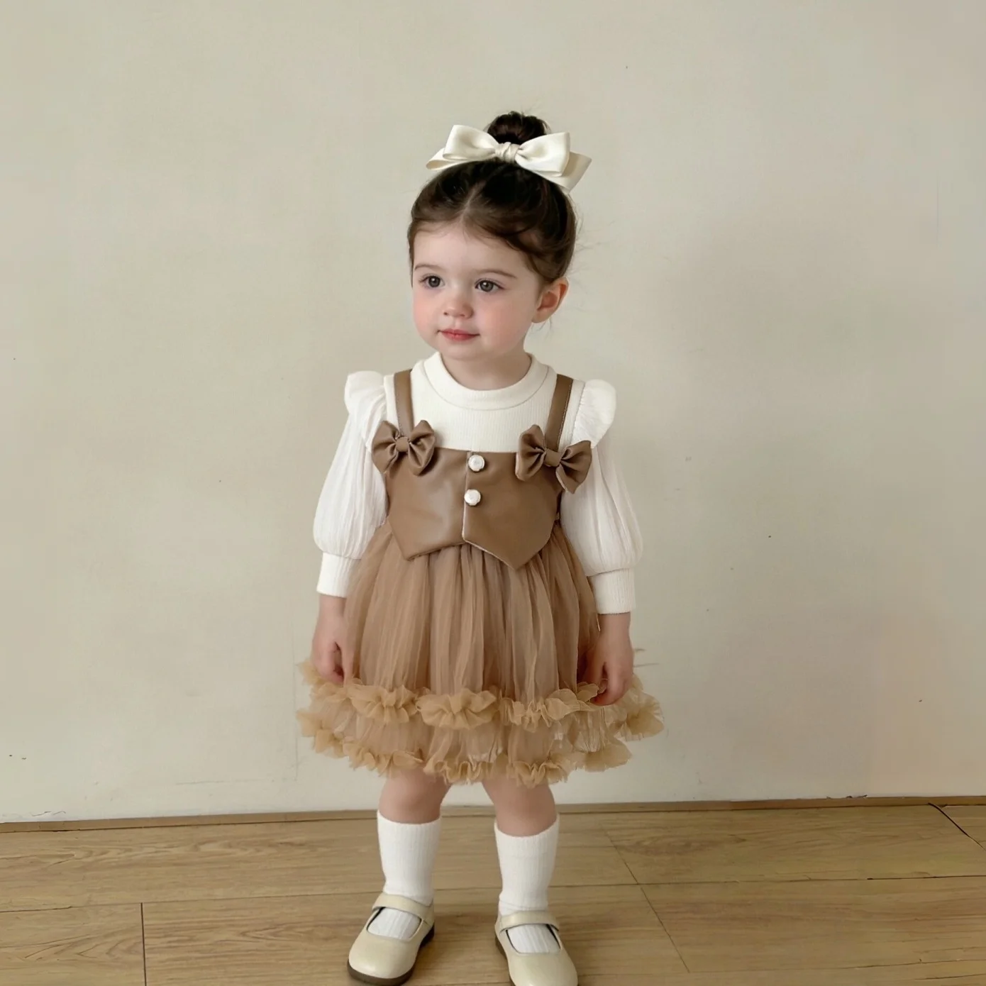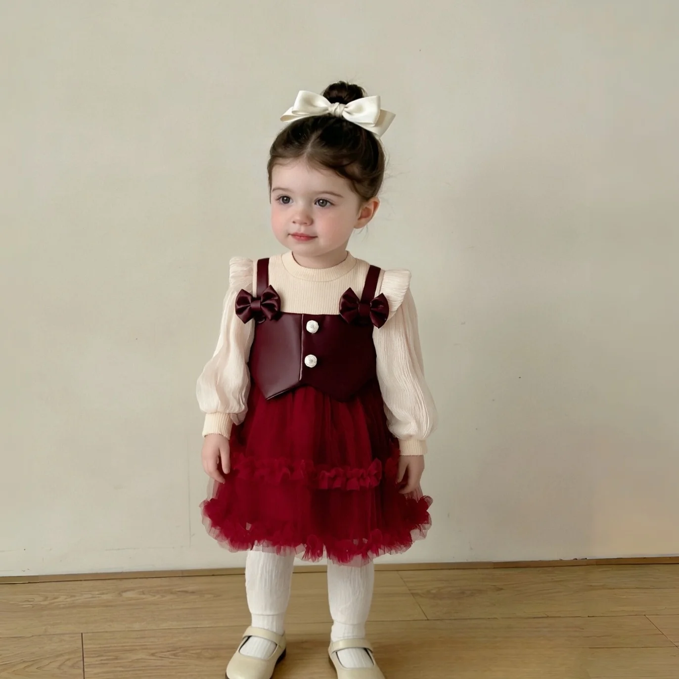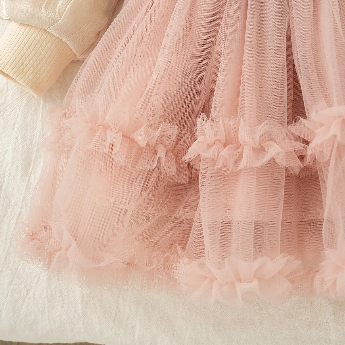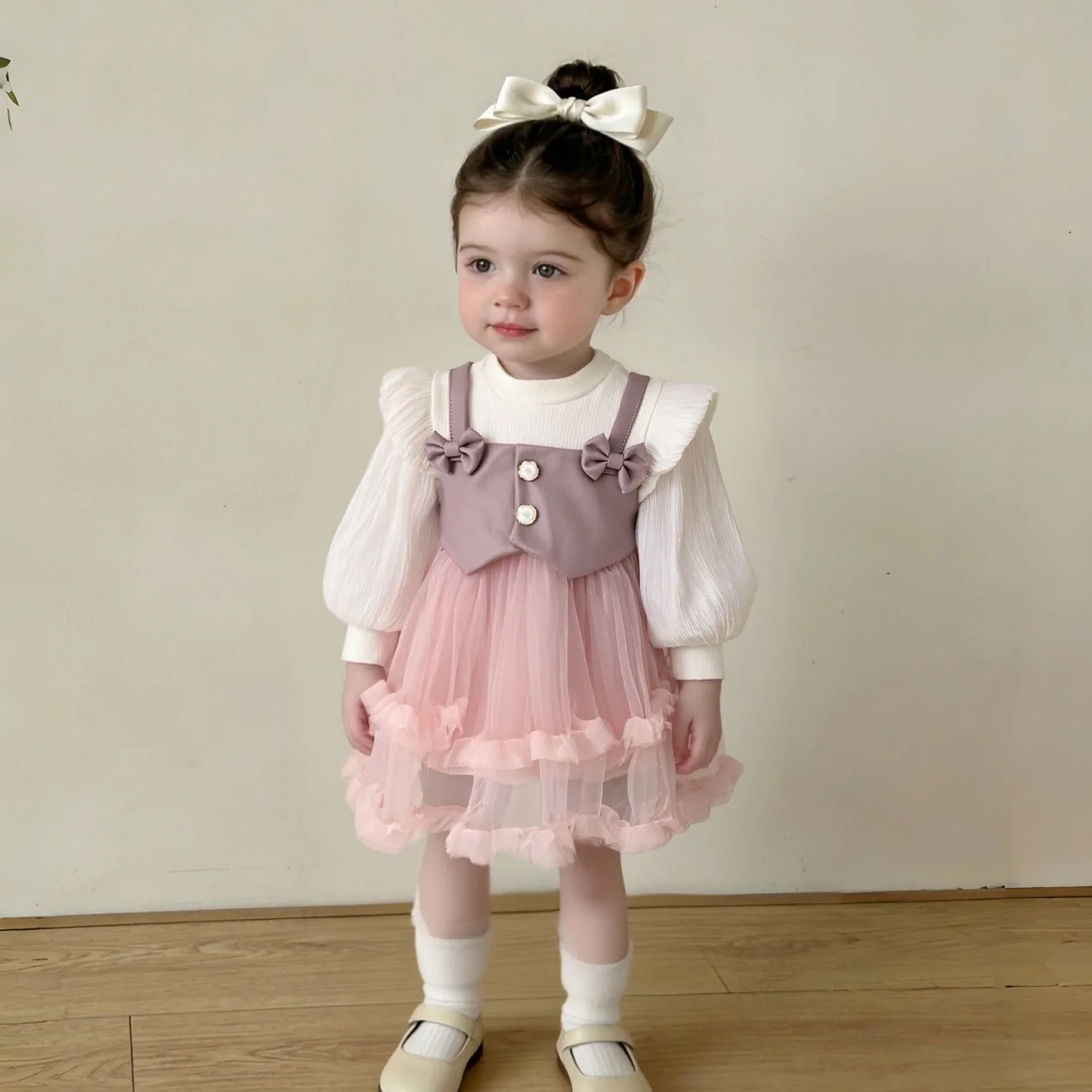 - > Primavera e outono novo vestido da menina do bebê doce malha vestido de princesa, vestido de festa da menina do bebê roupas infantis 6 meses a 3 anos