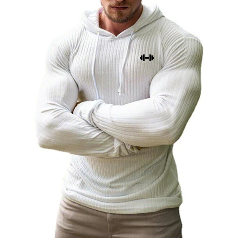- > Primavera outono dos homens correndo camisetas com capuz fino com nervuras de malha esportes blusas clássico tira magro ginásio fitness pulôver t camisas