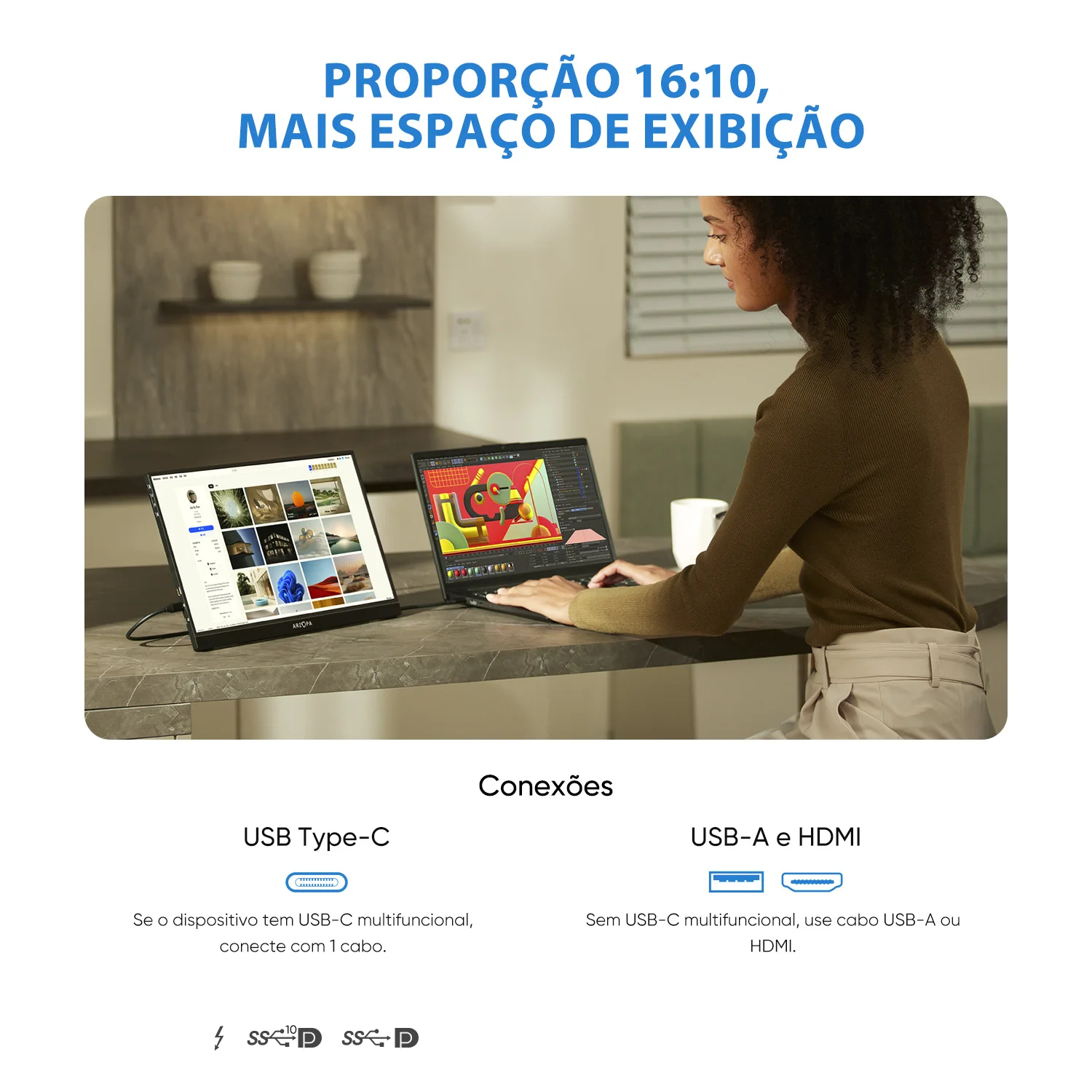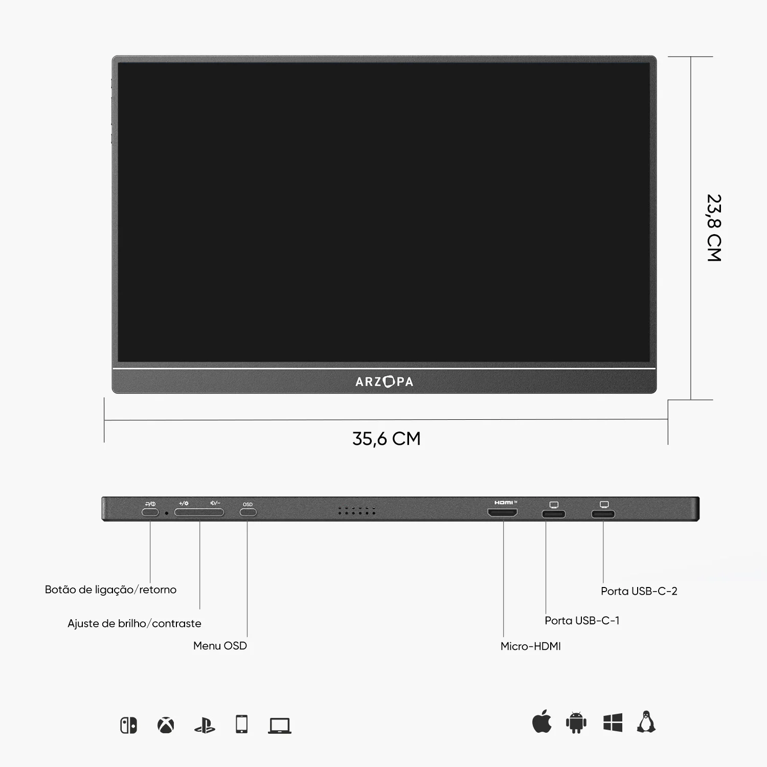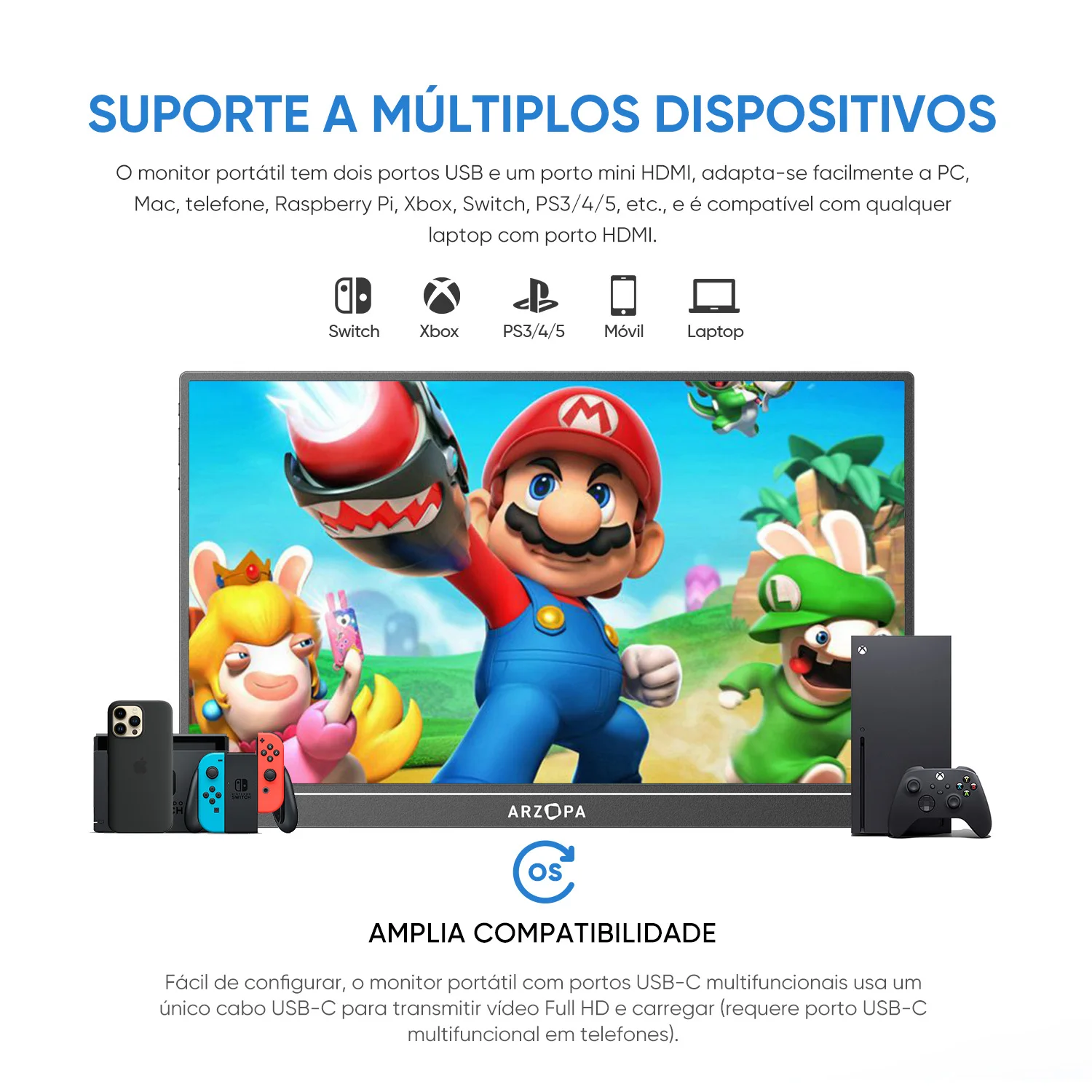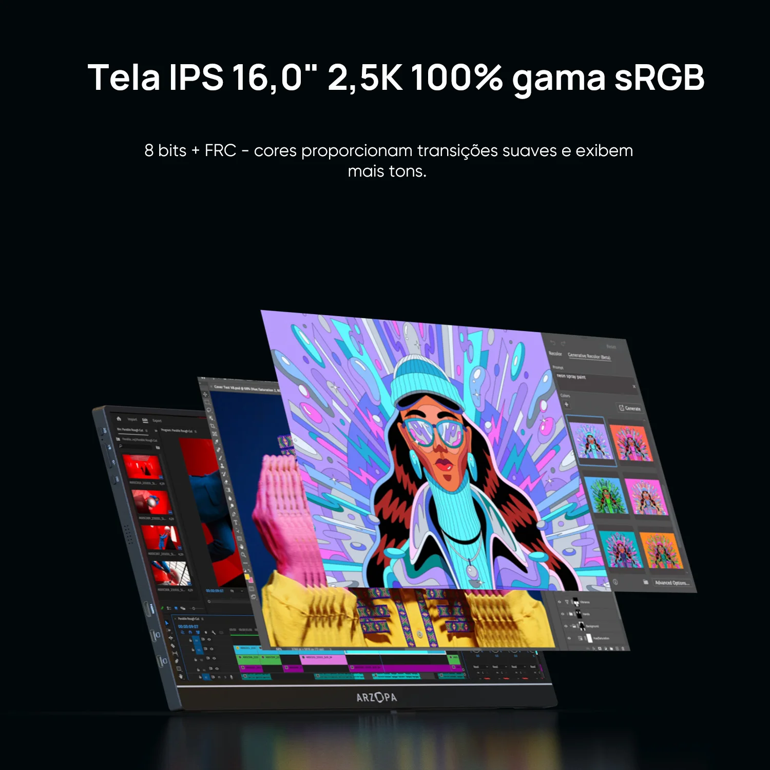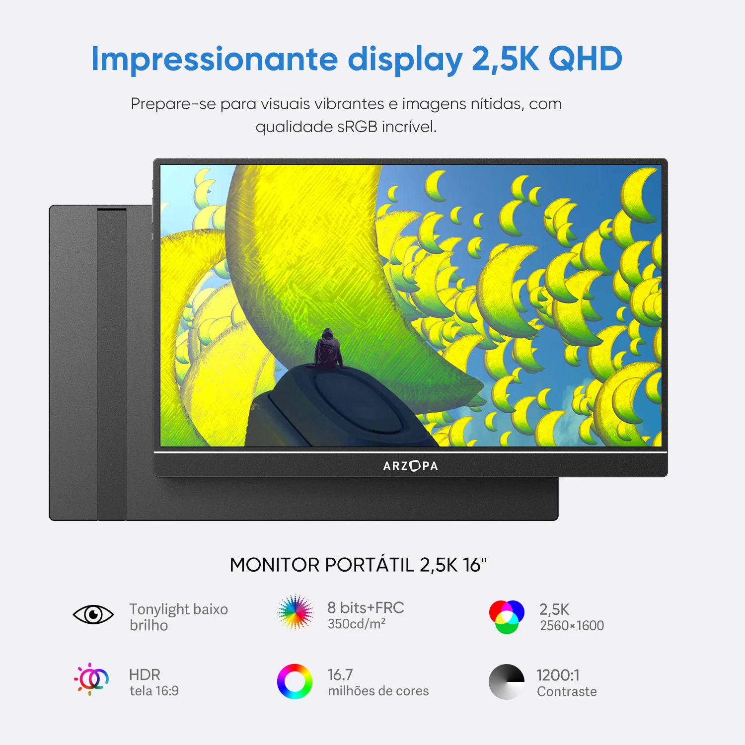 - > [produto no brasil] ARZOPA 16 polegadas 2K Monitor Portátil 16:10 Tela IPS com tipo-c mini hdmi Segundo Display para MAC/Laptop/PC/Xbox/PS4/5/Switch,Z1RC